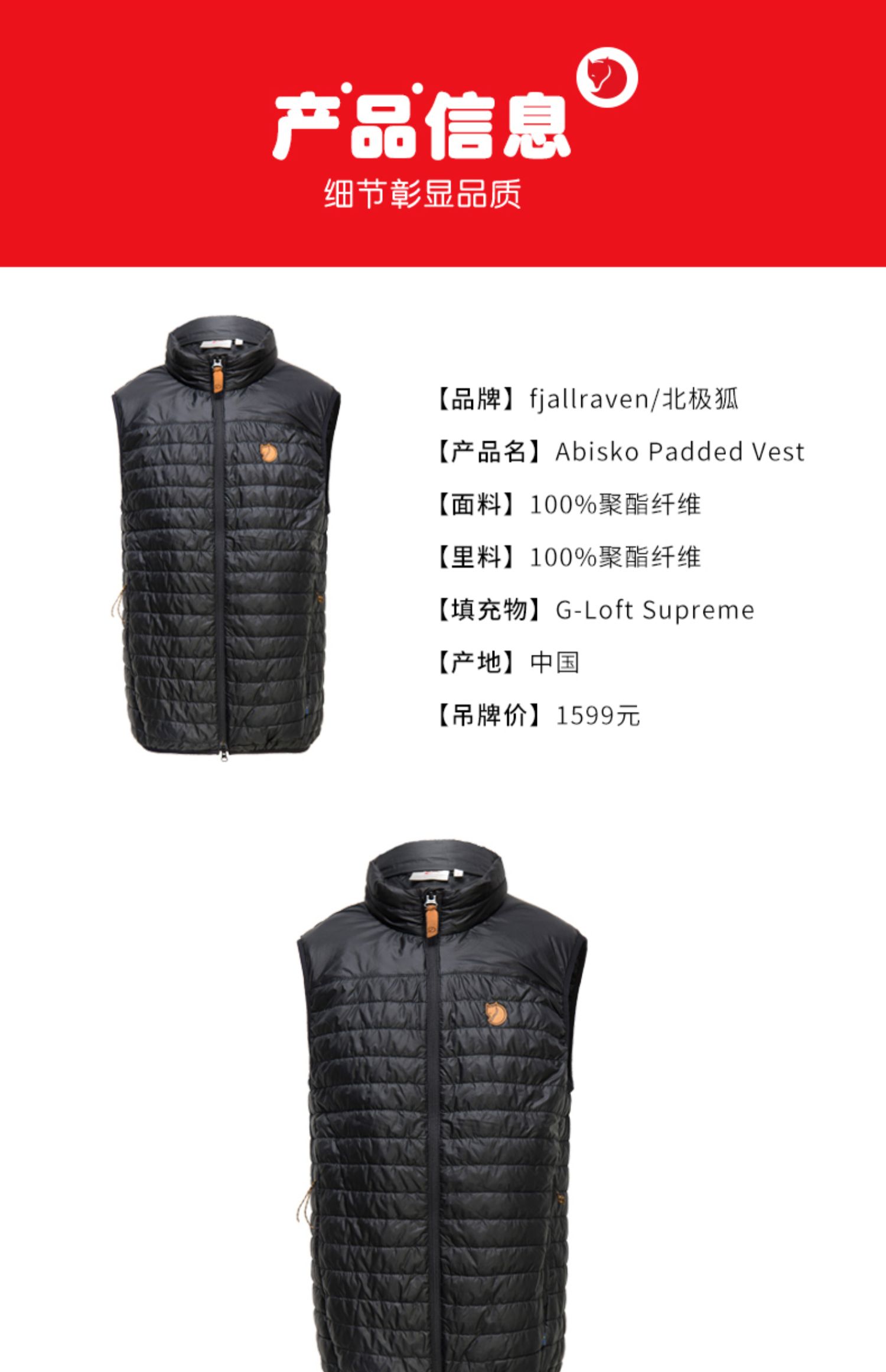 北极狐运动男士外套防风棉背心轻薄保暖透气可压缩马甲外套 83775