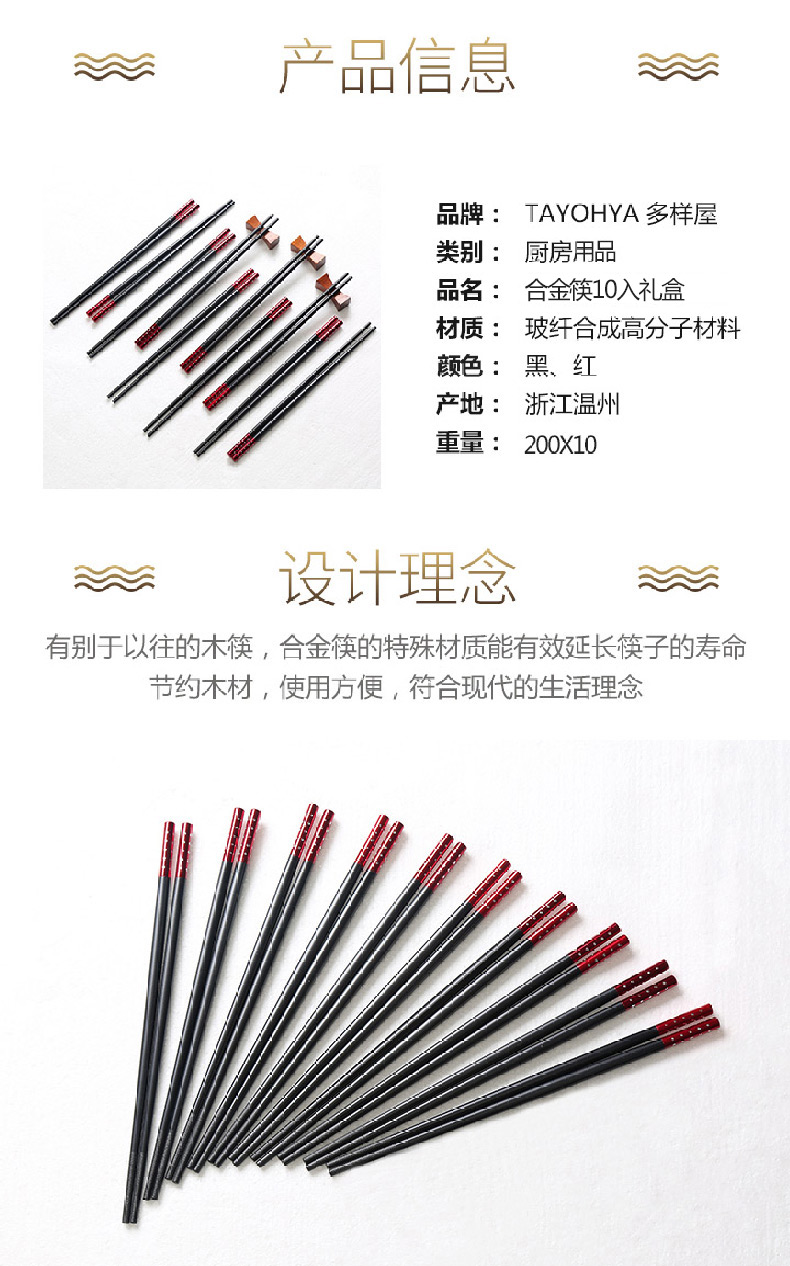 【10号清凉购直播间特价129任选4个】多样屋合金筷10双装礼盒/SW