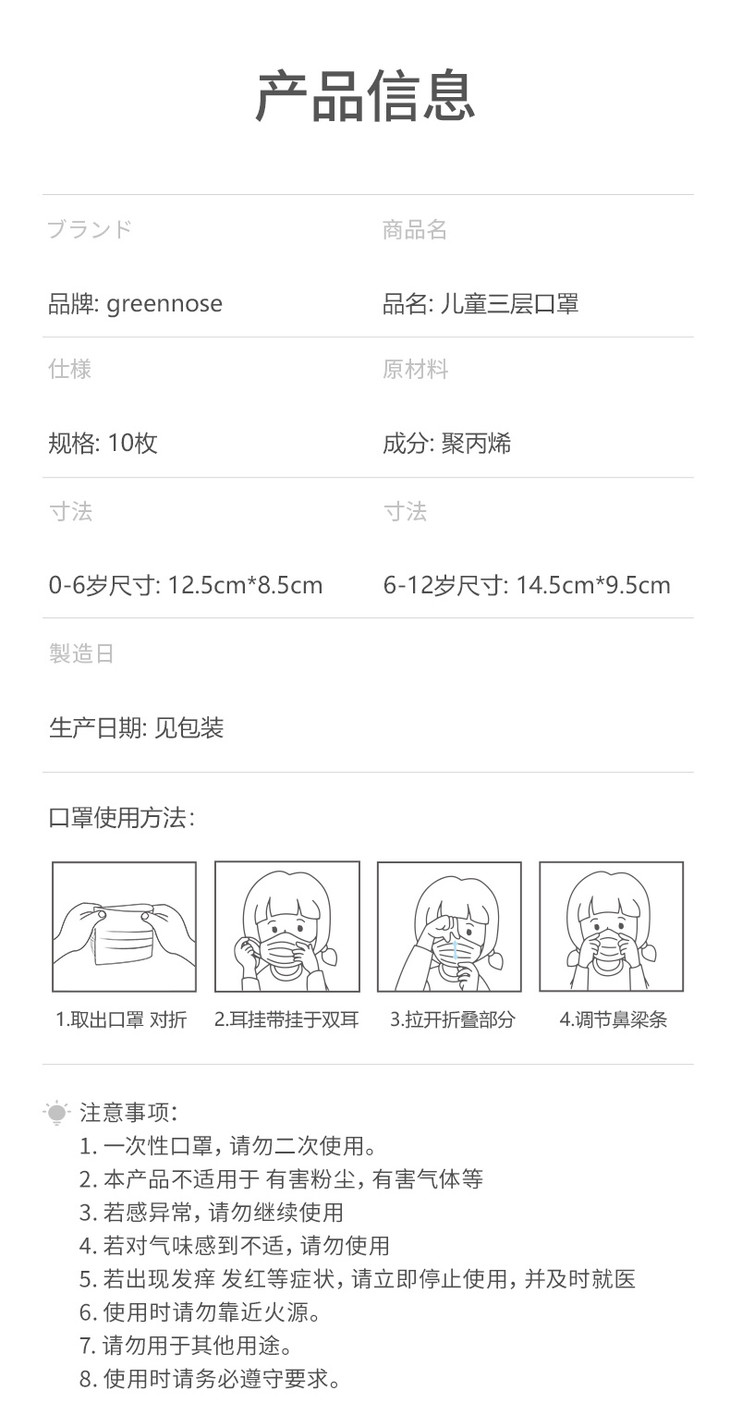 【Greennose绿鼻子】0-6岁儿童口罩(平面款)
