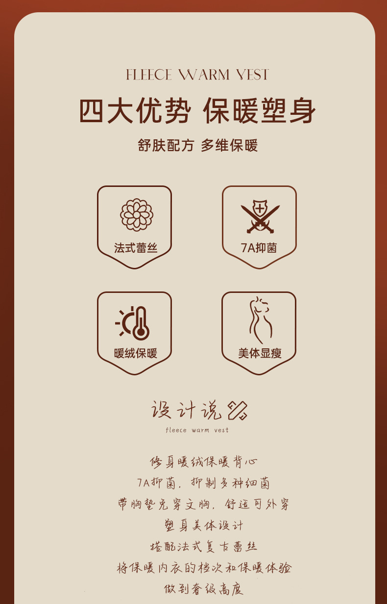 【柔软绒面,温暖怀抱】7A抑Jun加绒背心,内衬德绒打底秋衣,冬季必备。加厚德绒材质,柔软舒适。内含胸垫,增添曲线美。秋天的尊崇,穿上它才有的温暖!