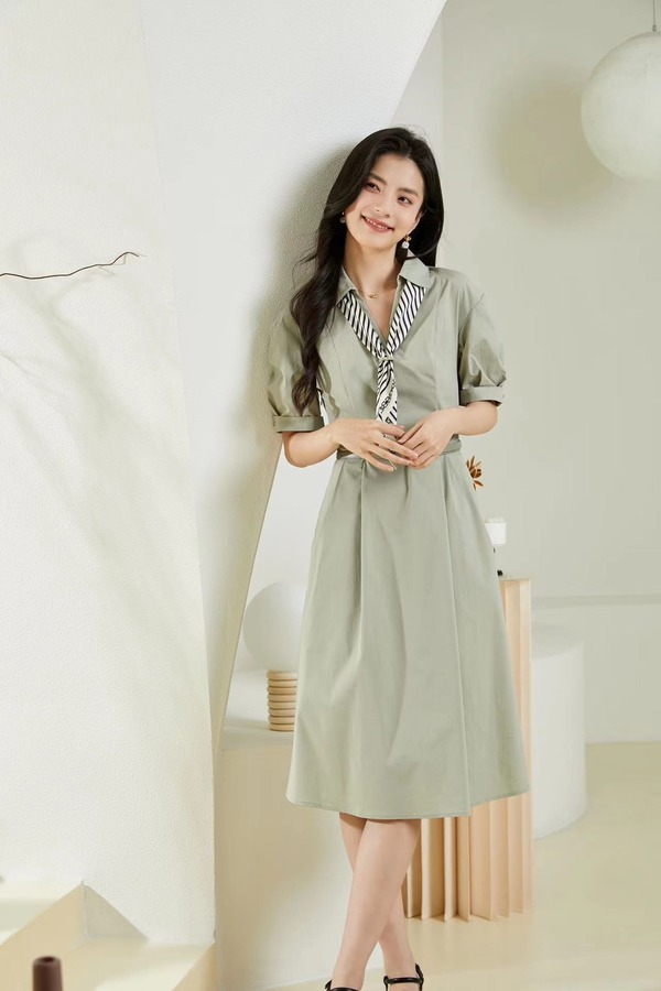 Le Malene 通勤V领丝巾连衣裙 20318【不含腰带】