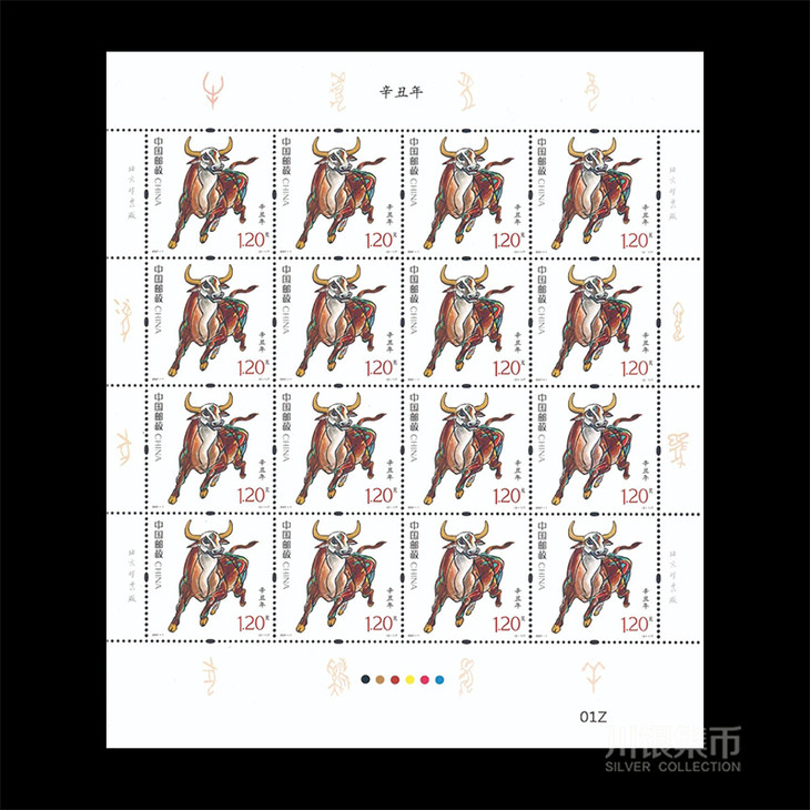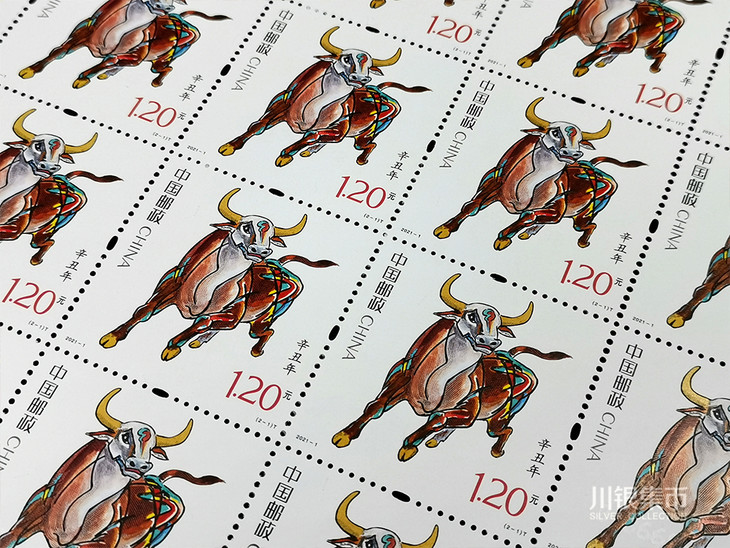 中国邮政定于2021年1月5日发行《辛丑年》特种邮票1套2枚。大版套票,一套2张,每张内含16枚邮票,共计32枚。