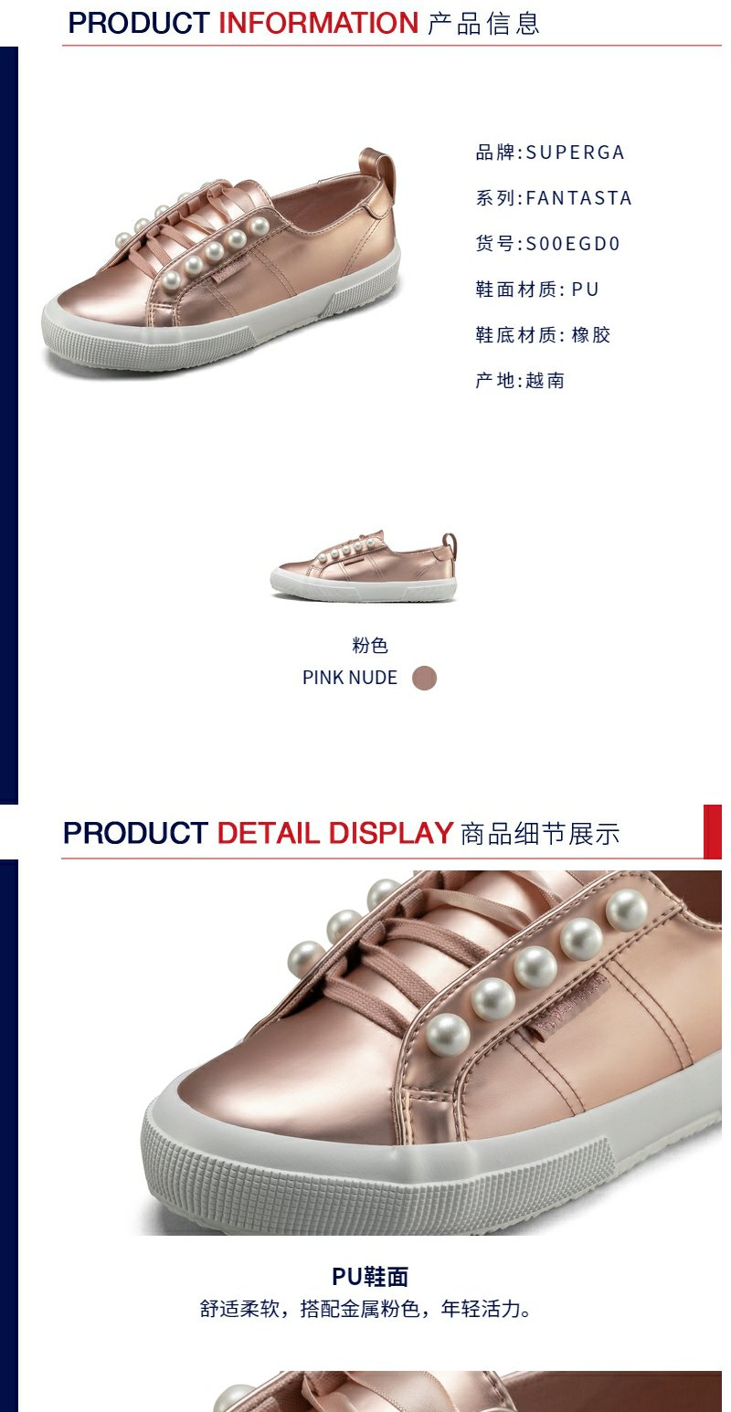 SUPERGA春季质感金属风珍珠鞋 女鞋一脚蹬套脚板鞋休闲鞋S00EGD0分销