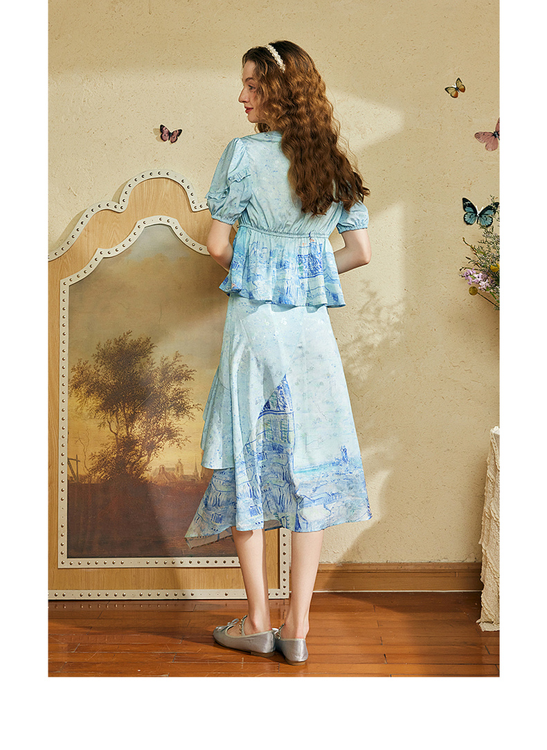 连衣裙 两三事梵高艺术不枉人间春夏新款旅行连衣裙设计感小众碎花裙