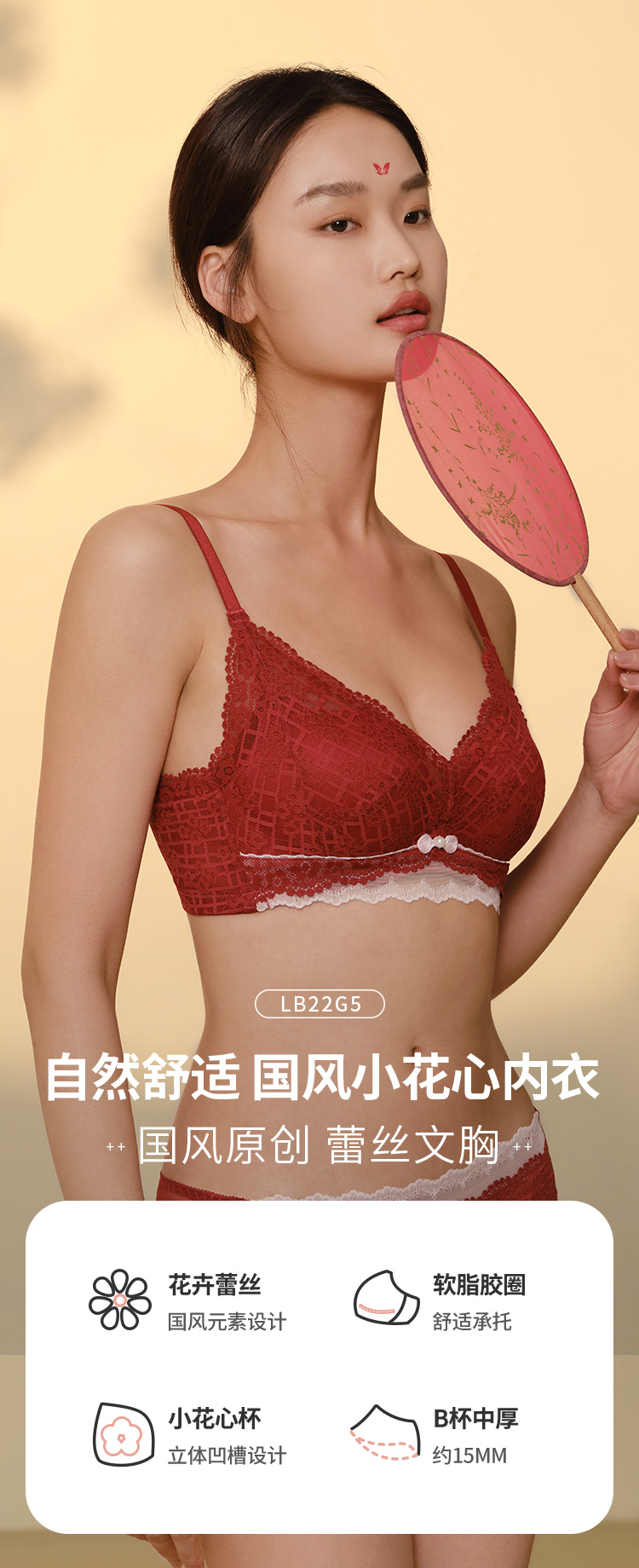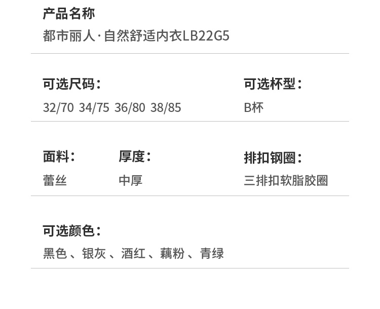 都市丽人自然舒适B杯常规内衣蕾丝薄3/4杯文胸三排扣软脂胶圈LB22G5