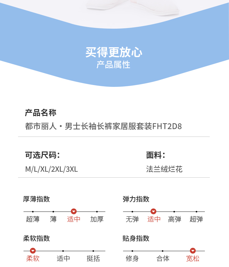 都市丽人都市锋尚睡衣舒适外出长袖法兰绒烂花厚男士法兰绒套装FHT2D8