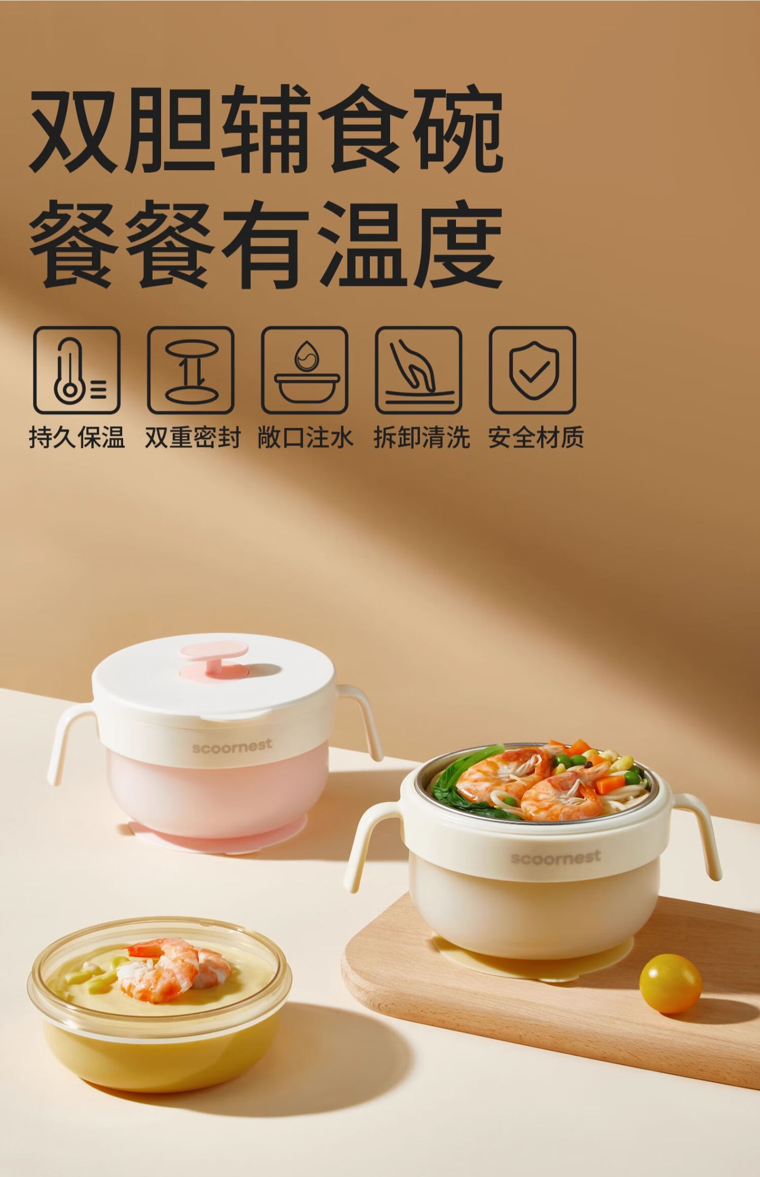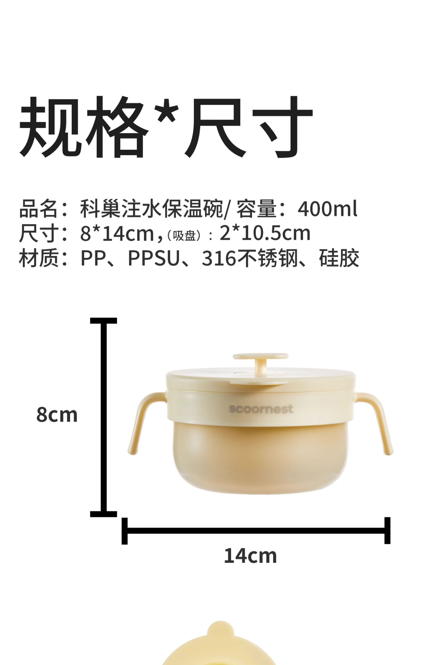 科巢PPSU宝宝注水保温碗辅食婴幼儿专用米粉吃饭恒温吸盘儿童餐具