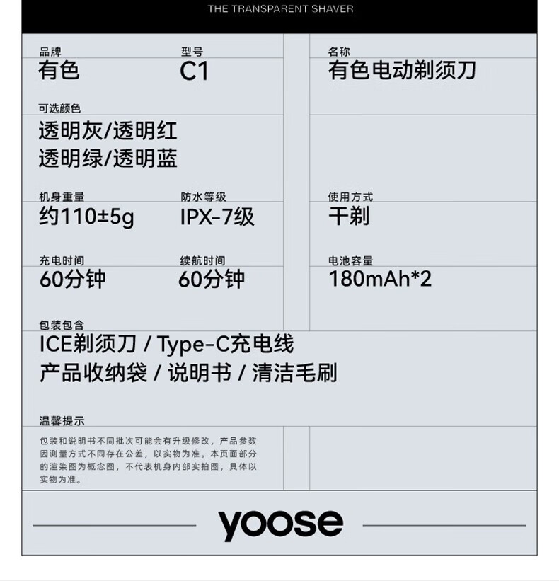 有色(yoose)男士电动剃须刀 潮流冰感便携 全身防水 送男友节日礼物 胡须刀礼盒