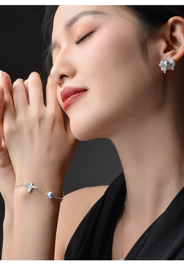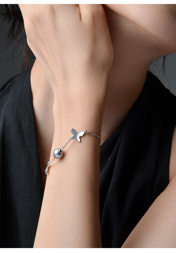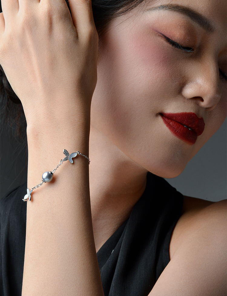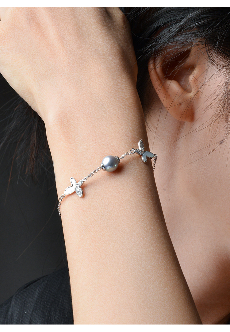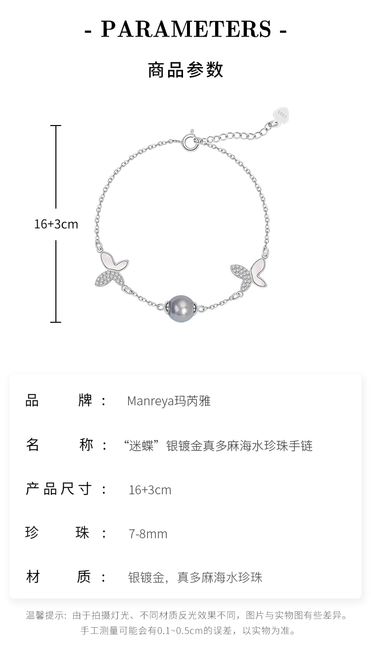 Manreya玛芮雅迷蝶银镀金真多麻海水珍珠手链