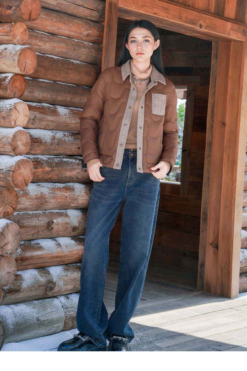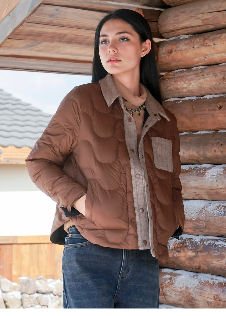 谜底两面穿短款羽绒服2025秋新款复古百搭翻领轻薄羽绒257MY8805