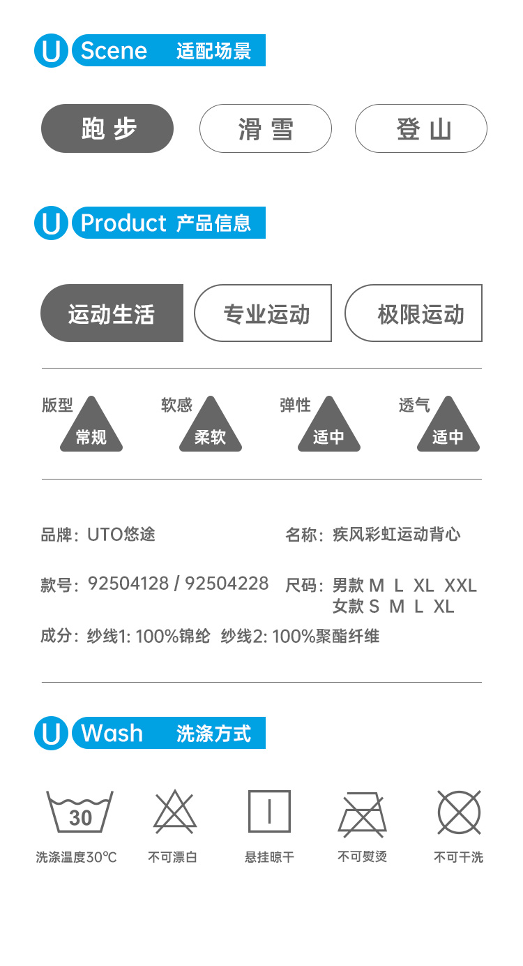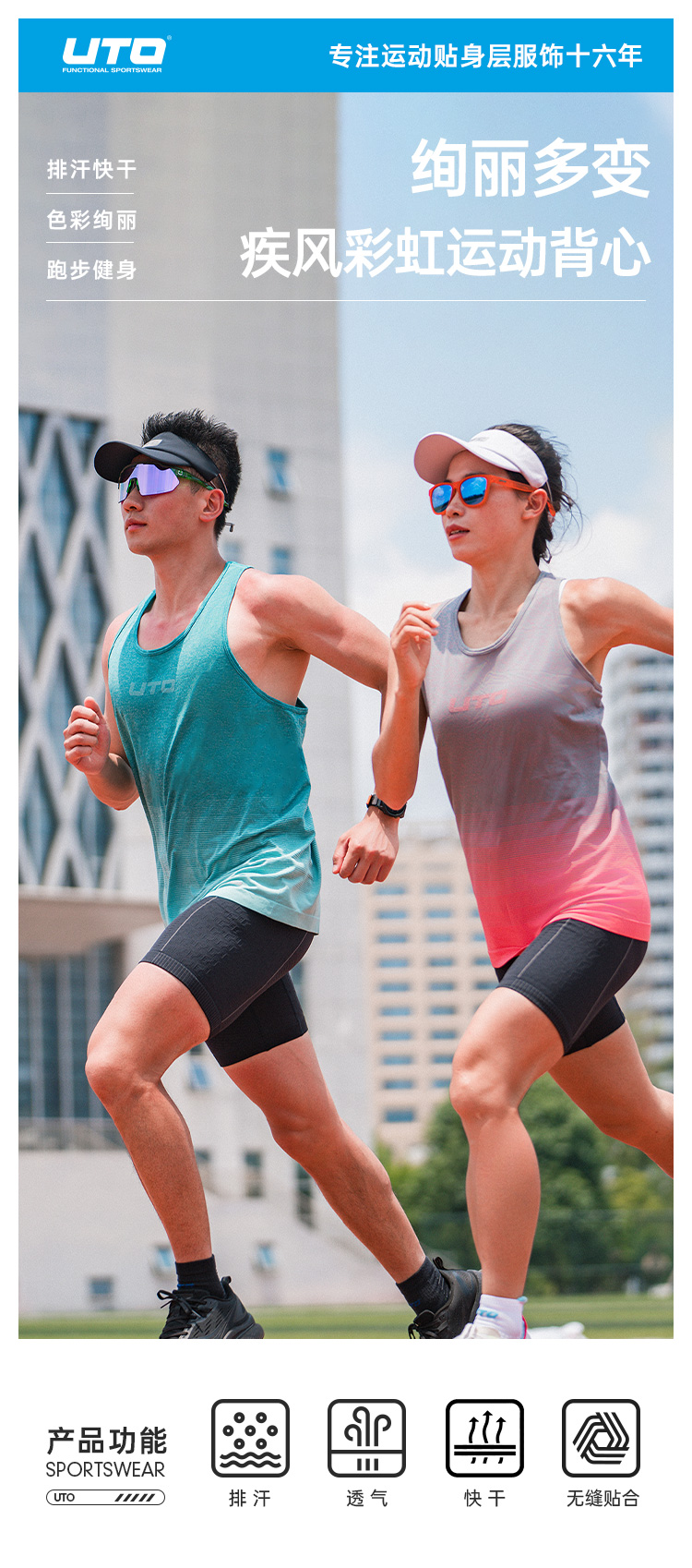UTO/悠途 疾风彩虹运动背心夏季跑步马拉松速干透气无袖