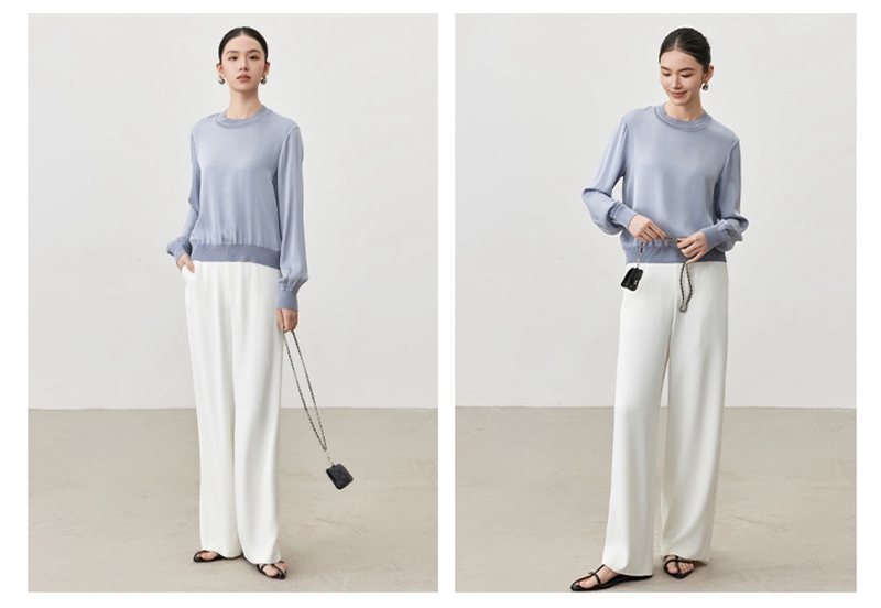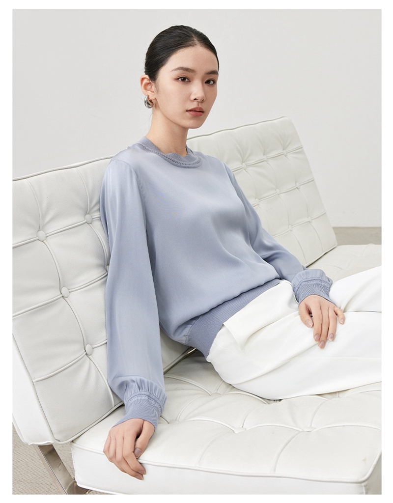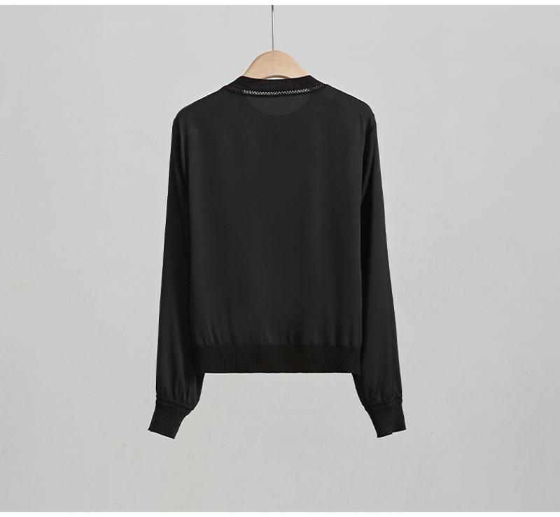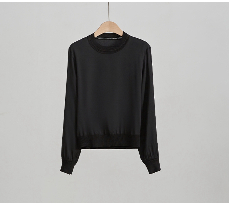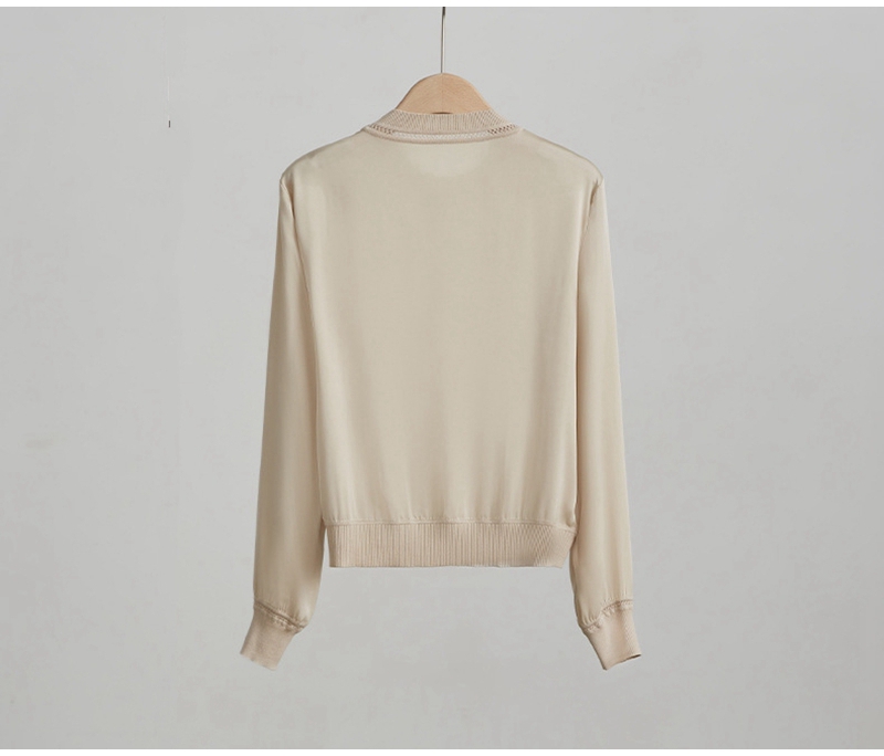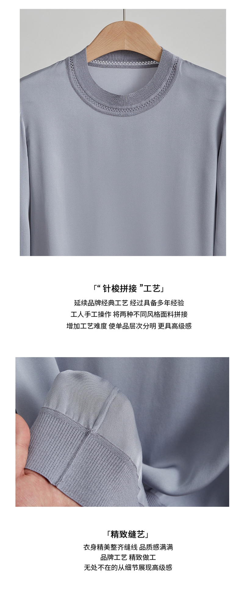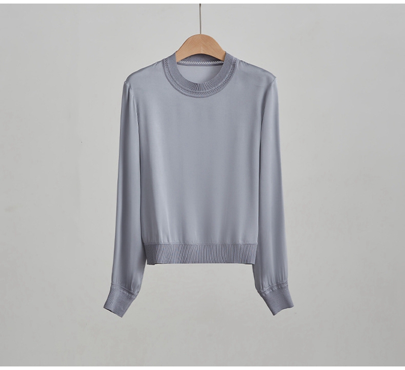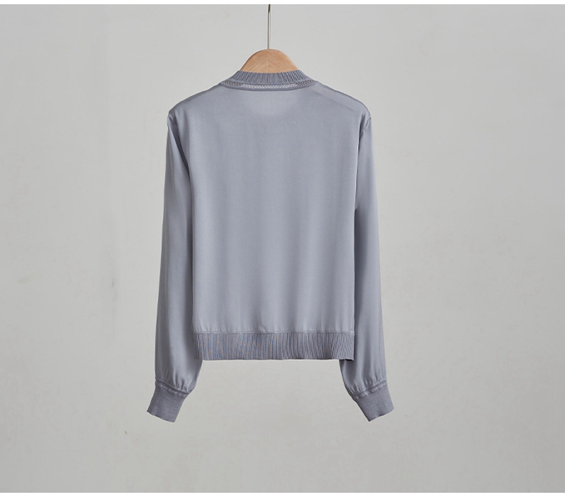 19姆米提花真丝立领长袖单排扣半襟套头衬衫