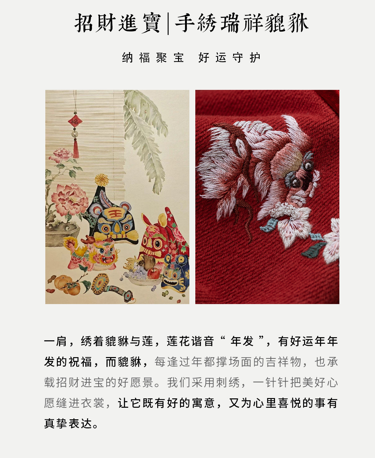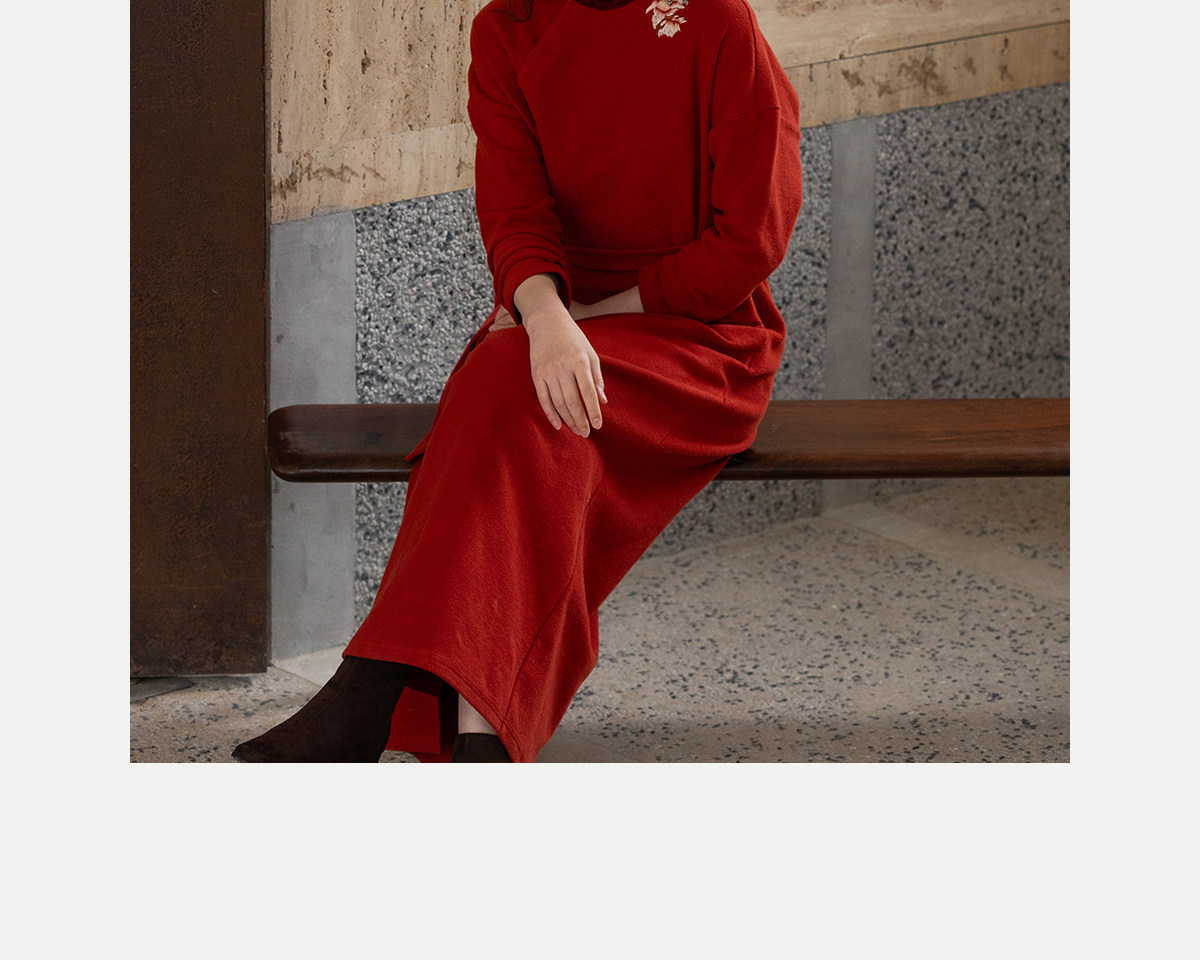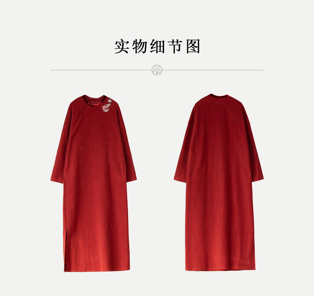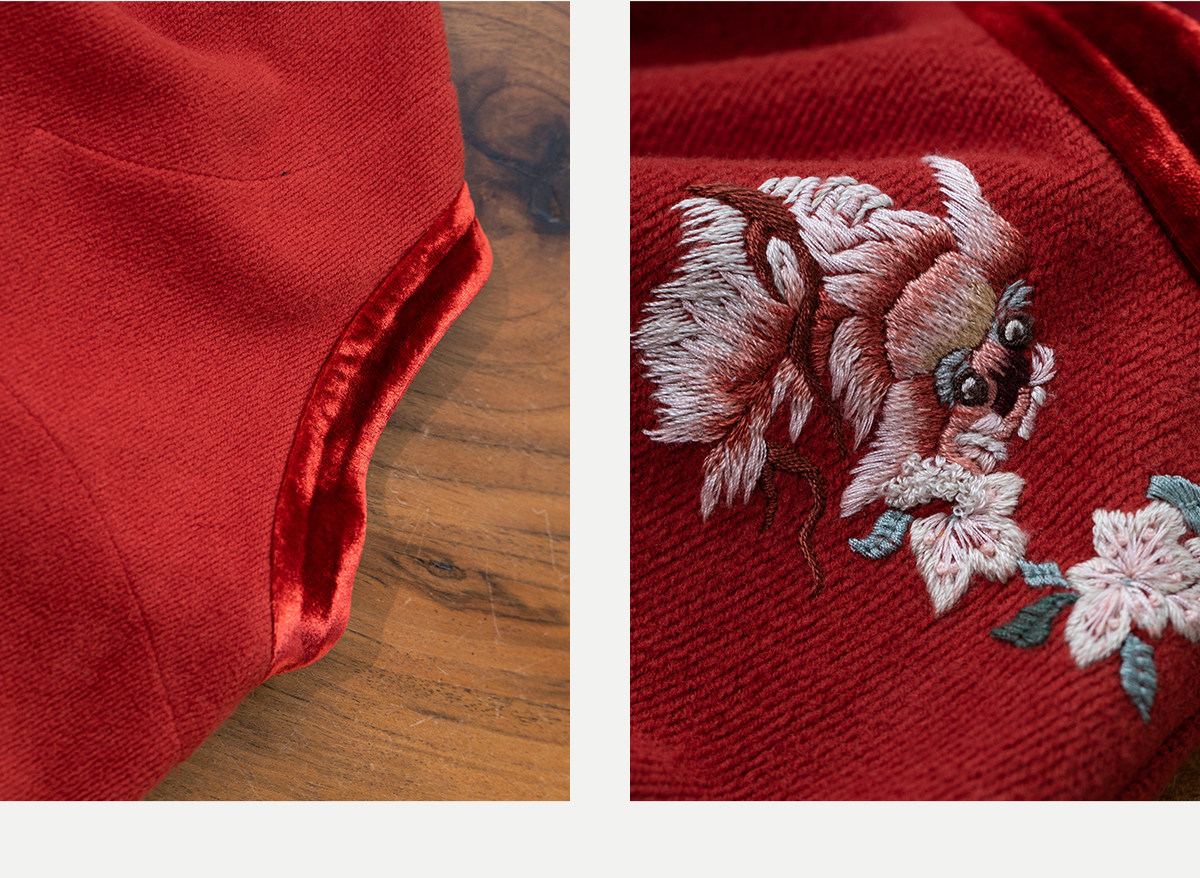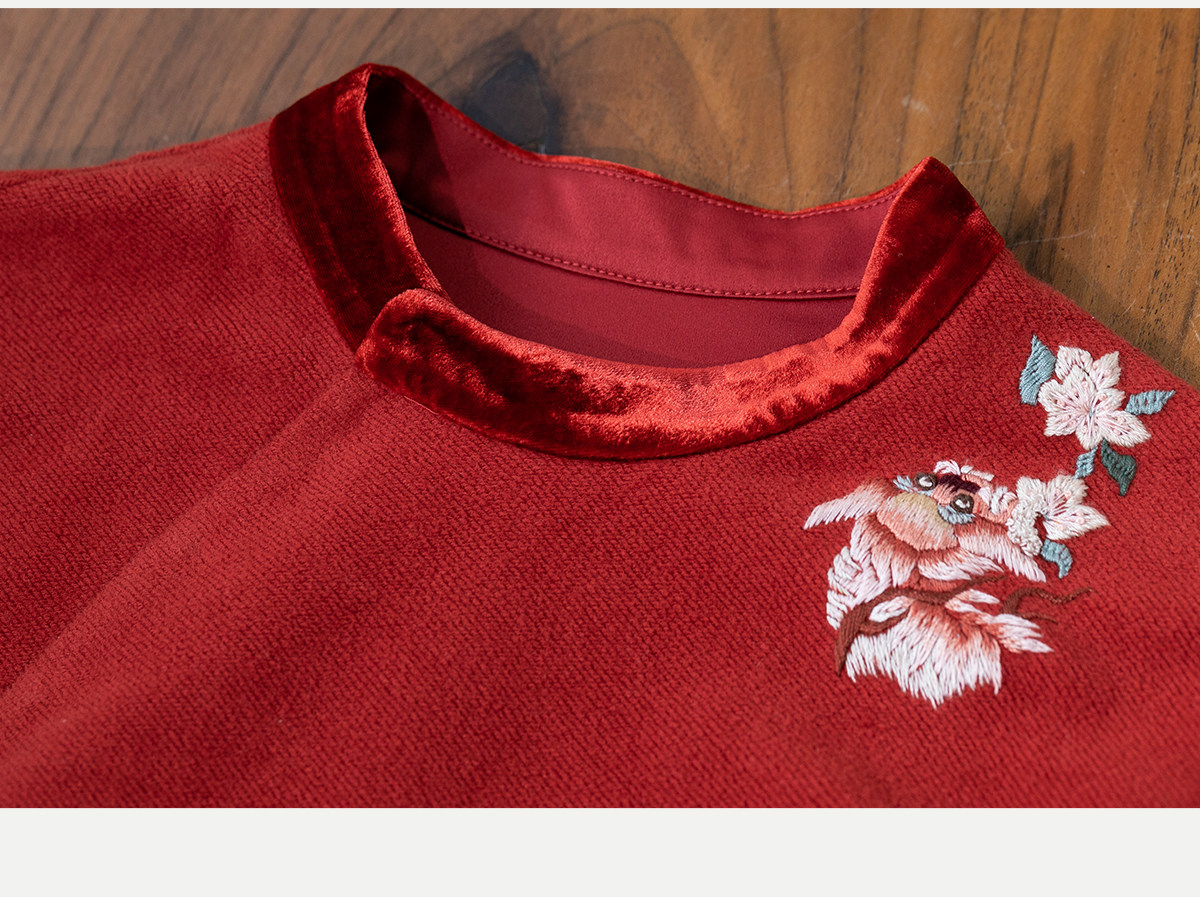 牧衣游原创 貔貅手工刺绣纯棉连衣裙宽松红色中式改良旗袍 涟一
