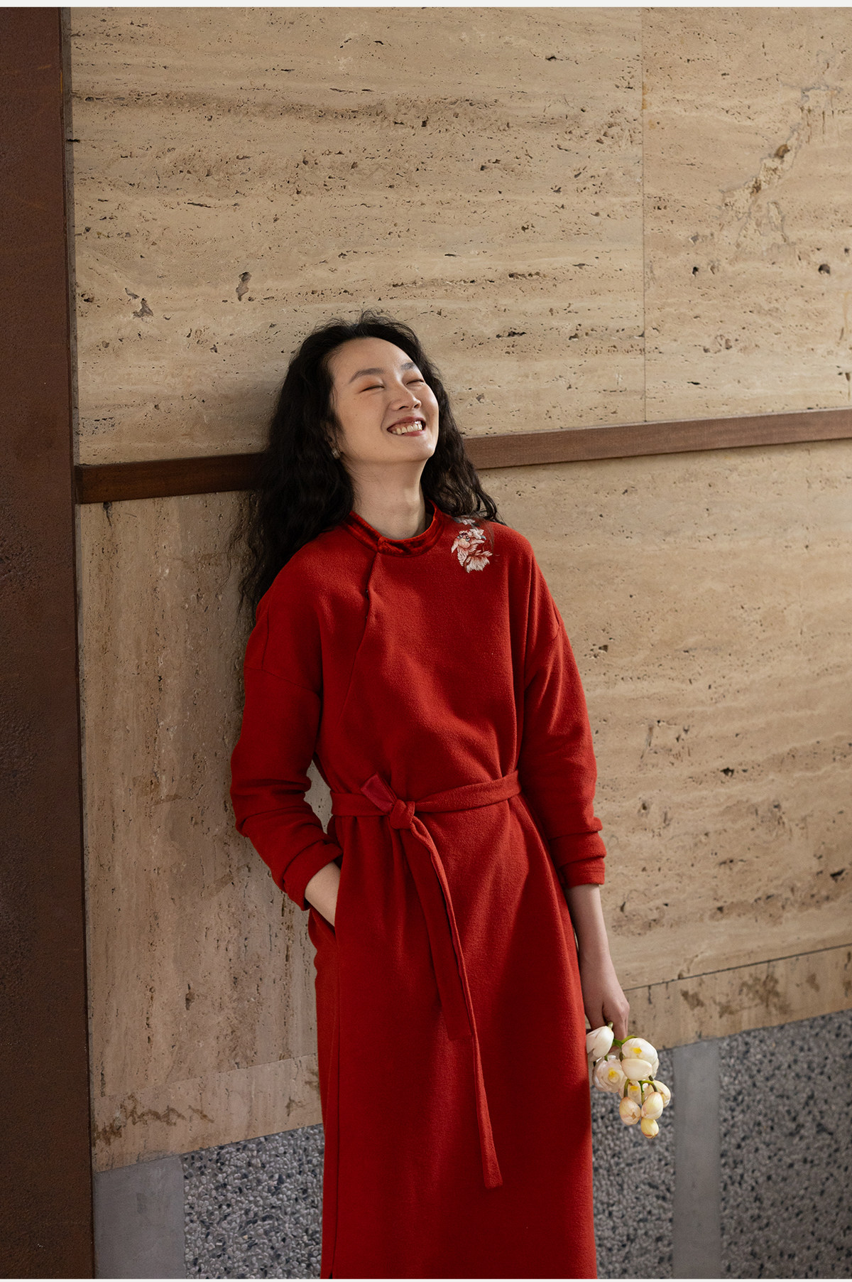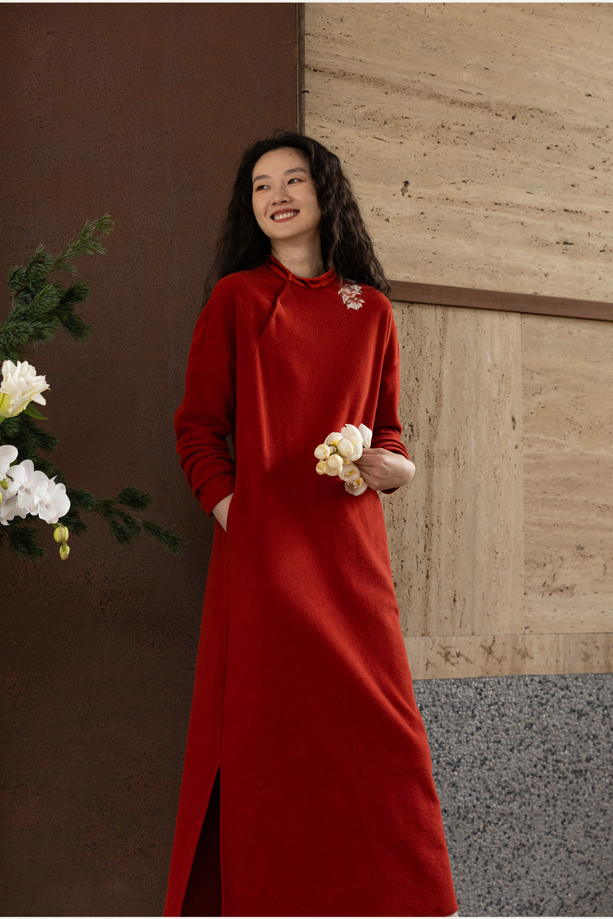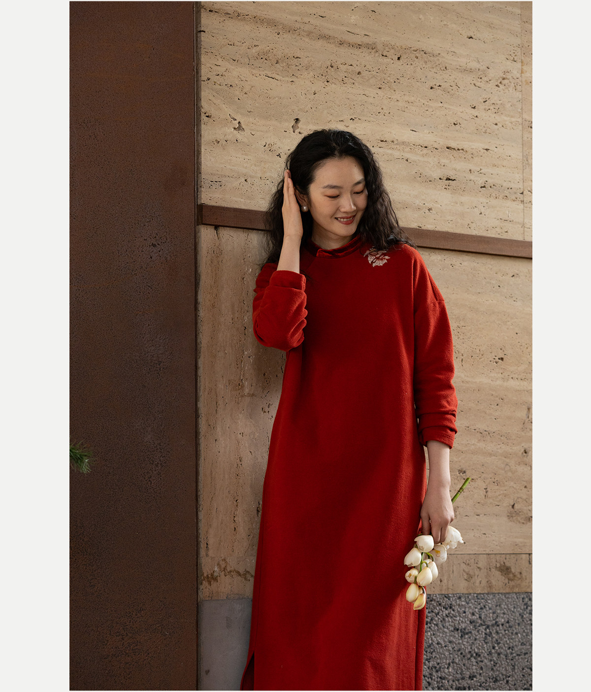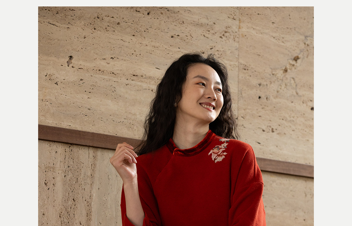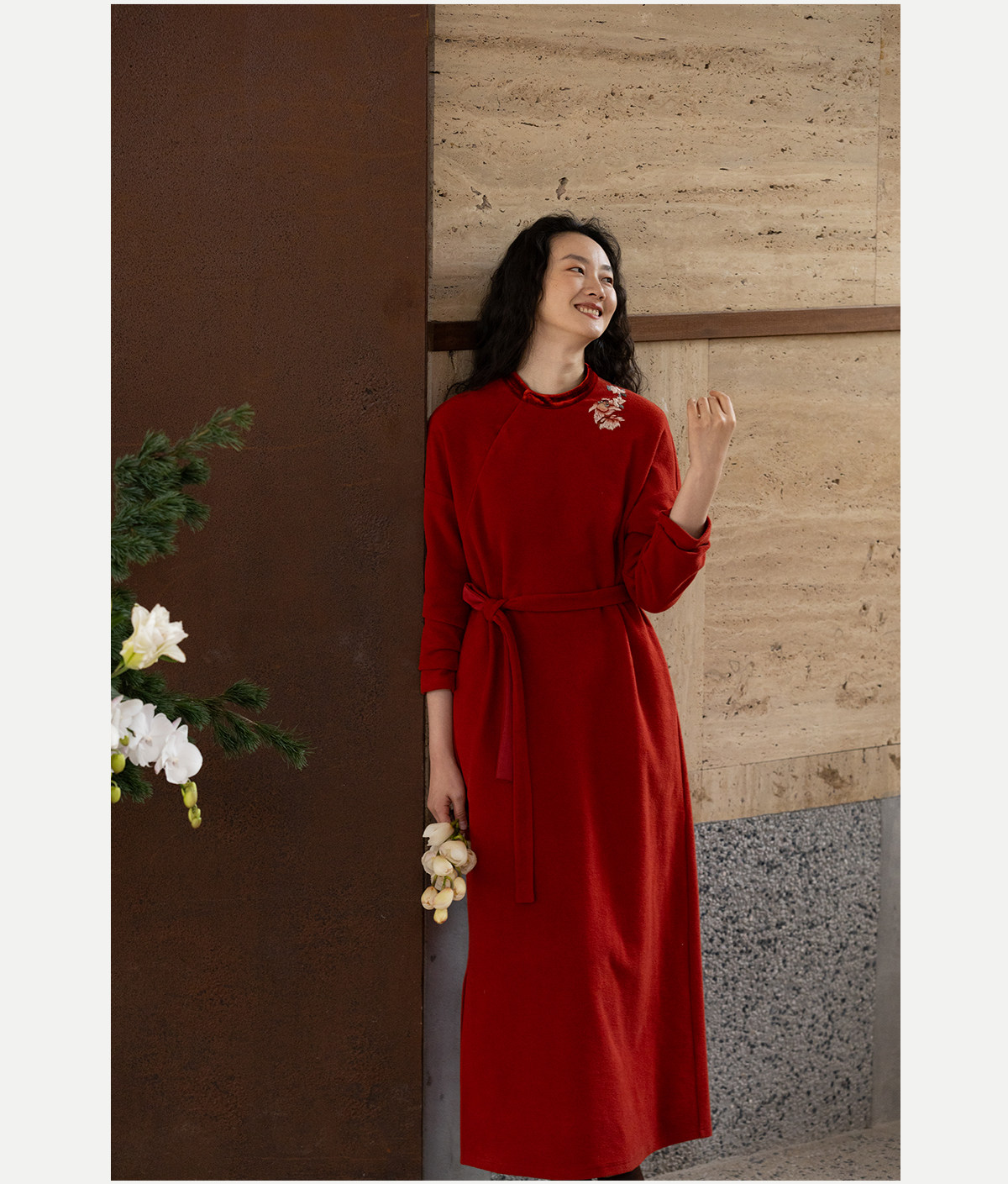 牧衣游原创 貔貅手工刺绣纯棉连衣裙宽松红色中式改良旗袍 涟一