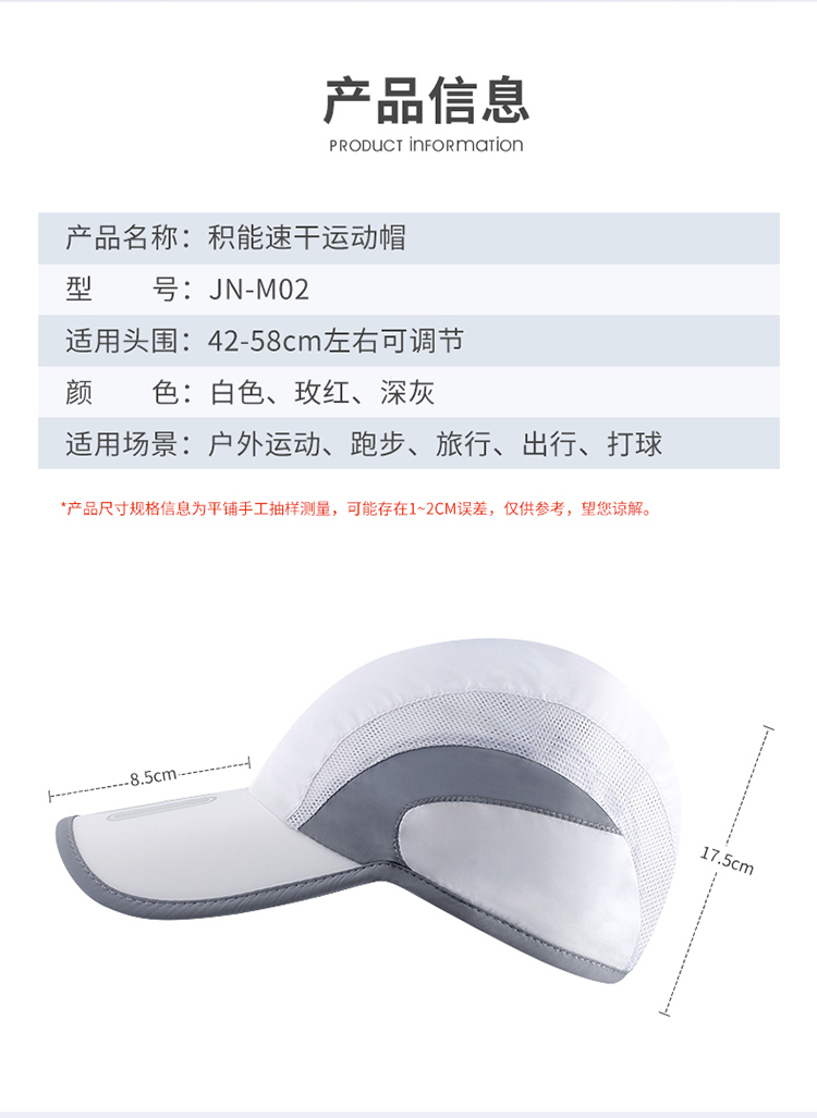 积能 户外运动网帽子男女刺绣运动网帽户外超薄速干帽透气户外运动帽