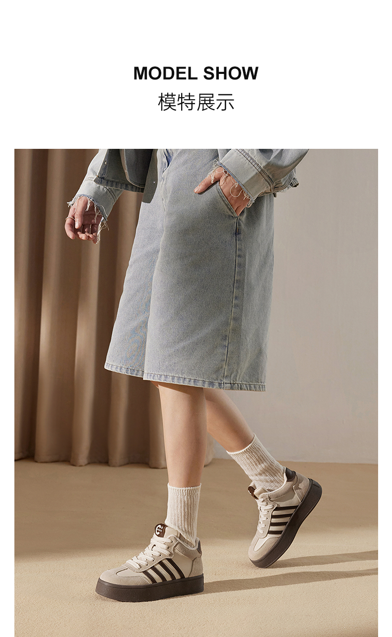 千百度厚底加绒德训鞋女款冬季保暖复古高帮鞋休闲运动鞋A24696612