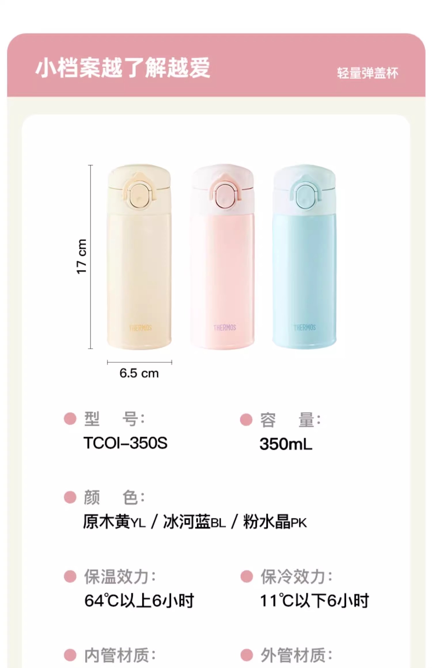 膳魔师保温杯316L不锈钢简约小容量便携车载杯TCOI-350