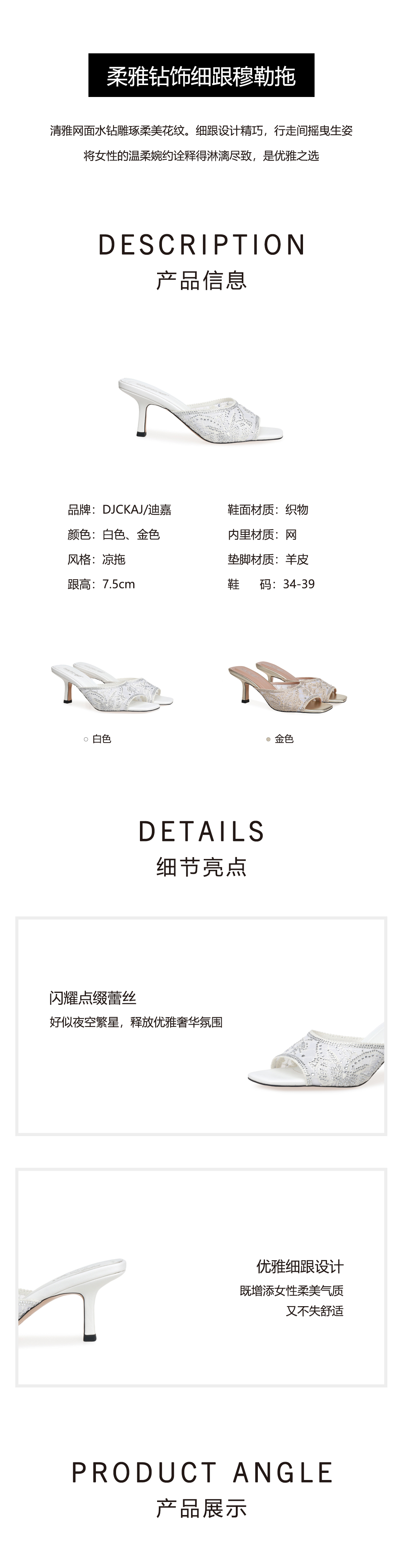 豪麟名鞋奥莱迪嘉女鞋凉拖织物DJHJA51WL030白色 原价1660元