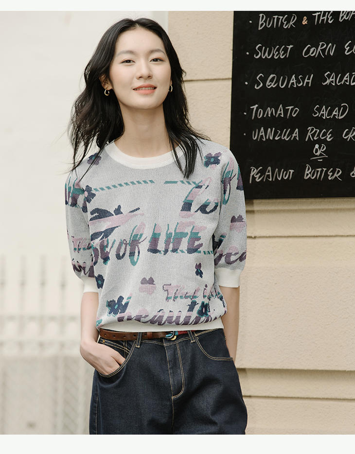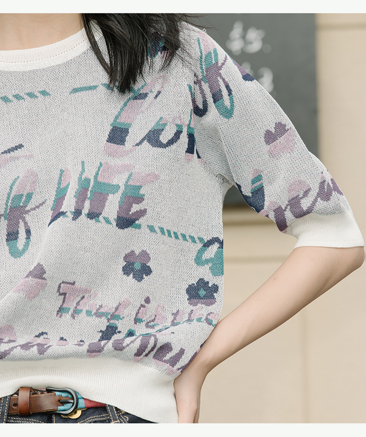 丽迪莎亚麻混纺提花休闲百搭针织衫KK13V2219