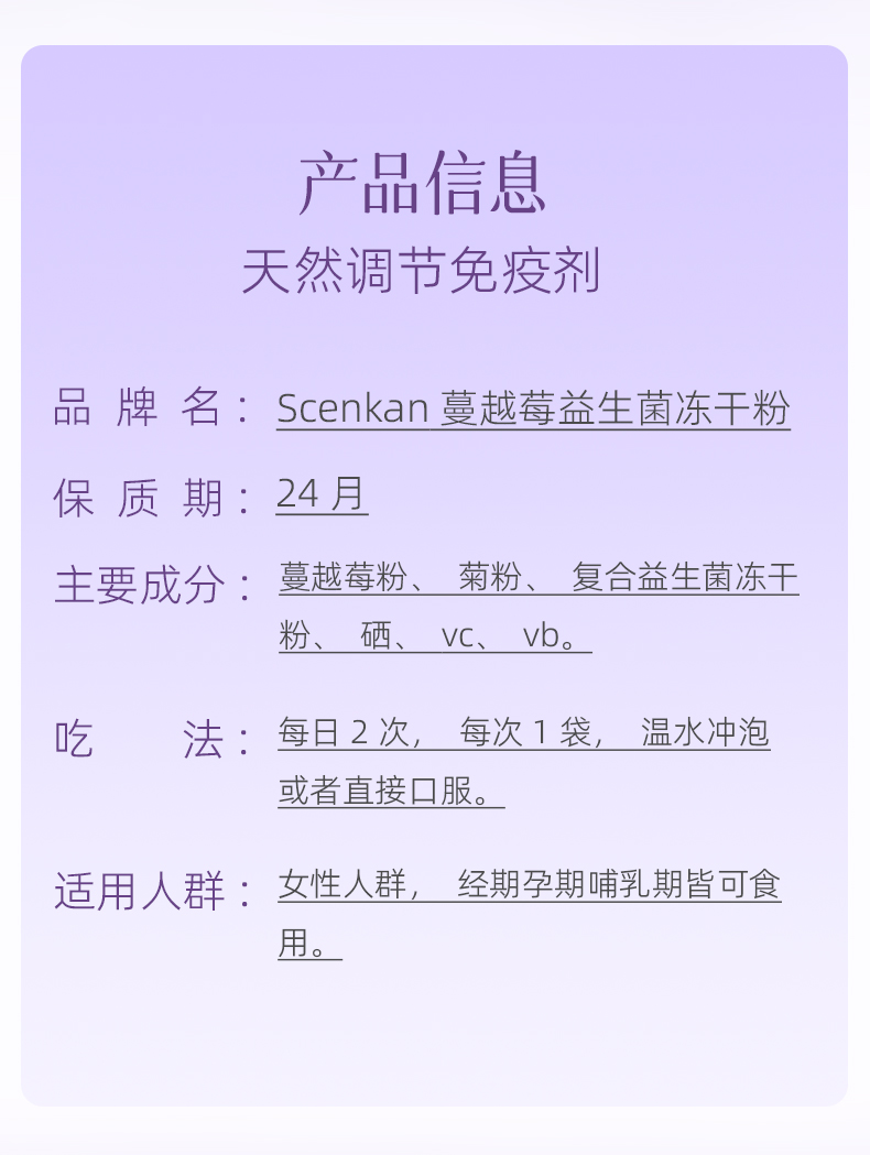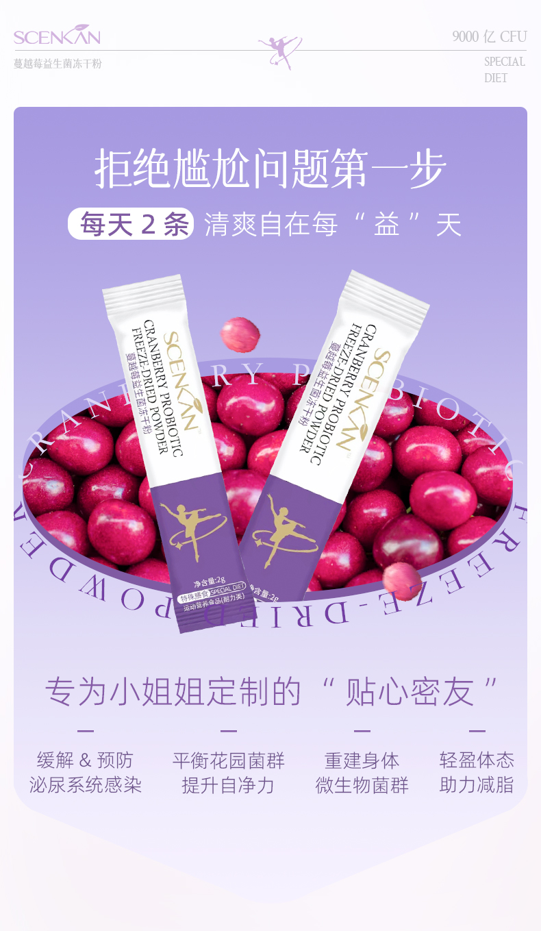 【scenkan】蔓越莓益生菌冻干粉 300亿活菌➕200枚新鲜蔓越莓营养成分 原料进口 (国产-国内云仓)