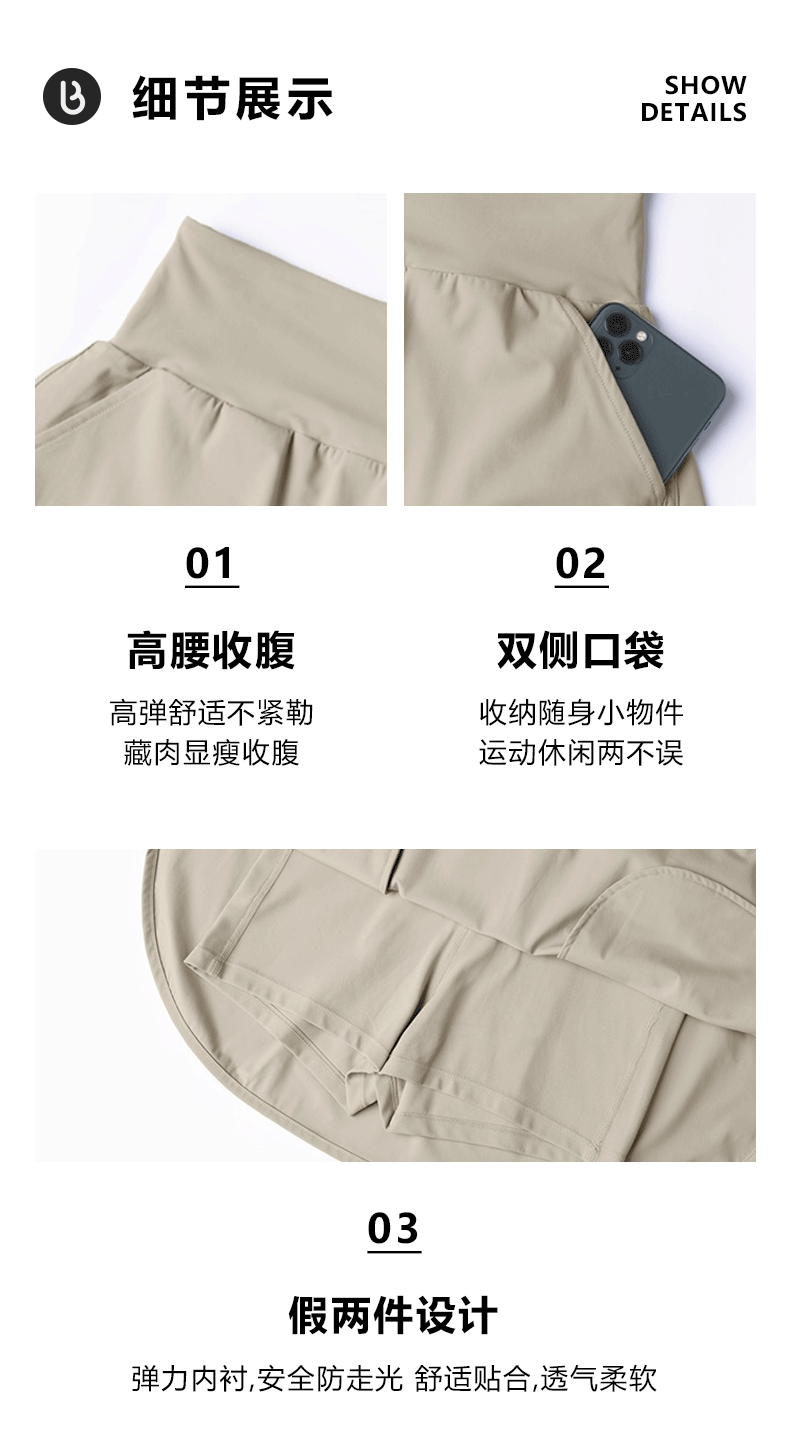 Beenem新款高腰显瘦假两件健身裙裤口袋瑜伽服跑步运动裤裙