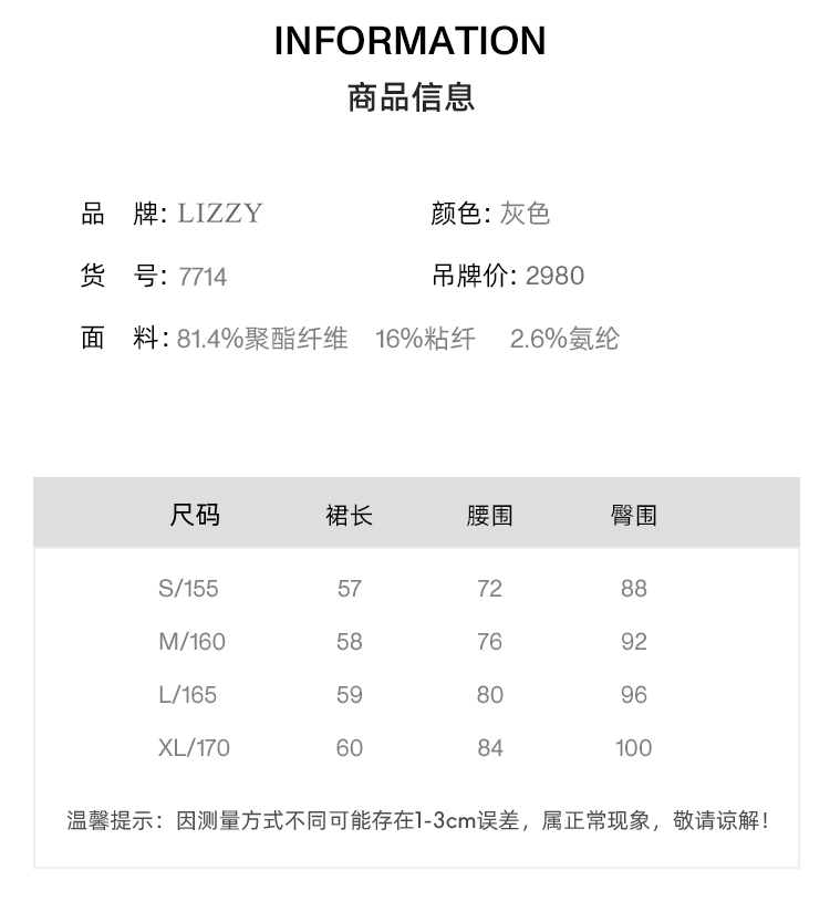 LIZZY 时尚气质通勤都市休闲工装风A字半身裙7714