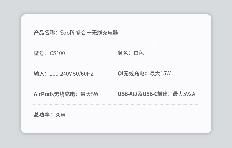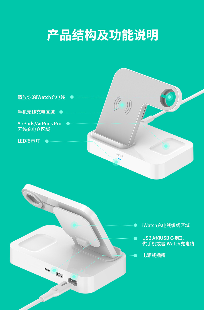 soopii(首佩)多功能无线充电器CS100