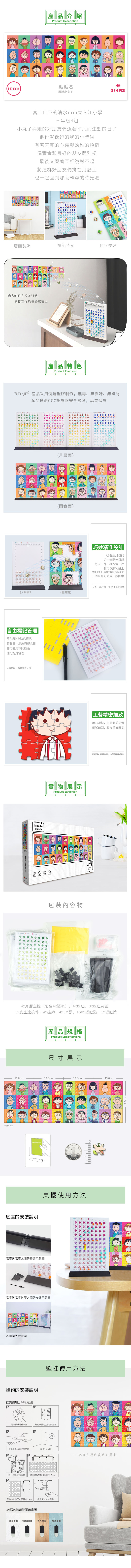【折扣商品 不退不换】384片 月历拼图 塑料拼图 HR1007 樱桃小丸子-点点名