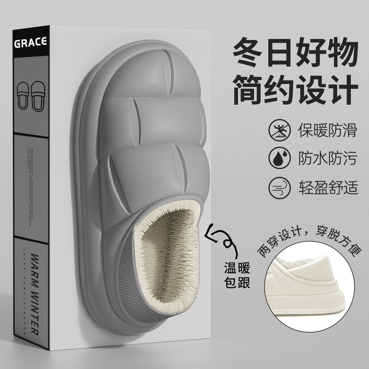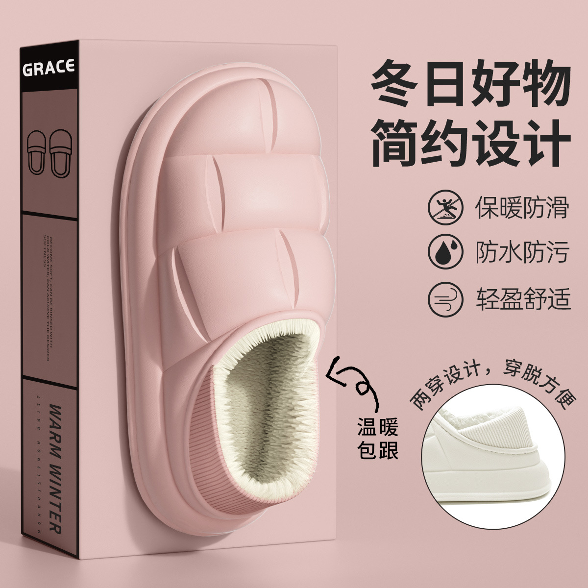 洁丽雅防水棉拖鞋 男女冬季2025新款室内居家厚底防滑情侣外穿棉鞋