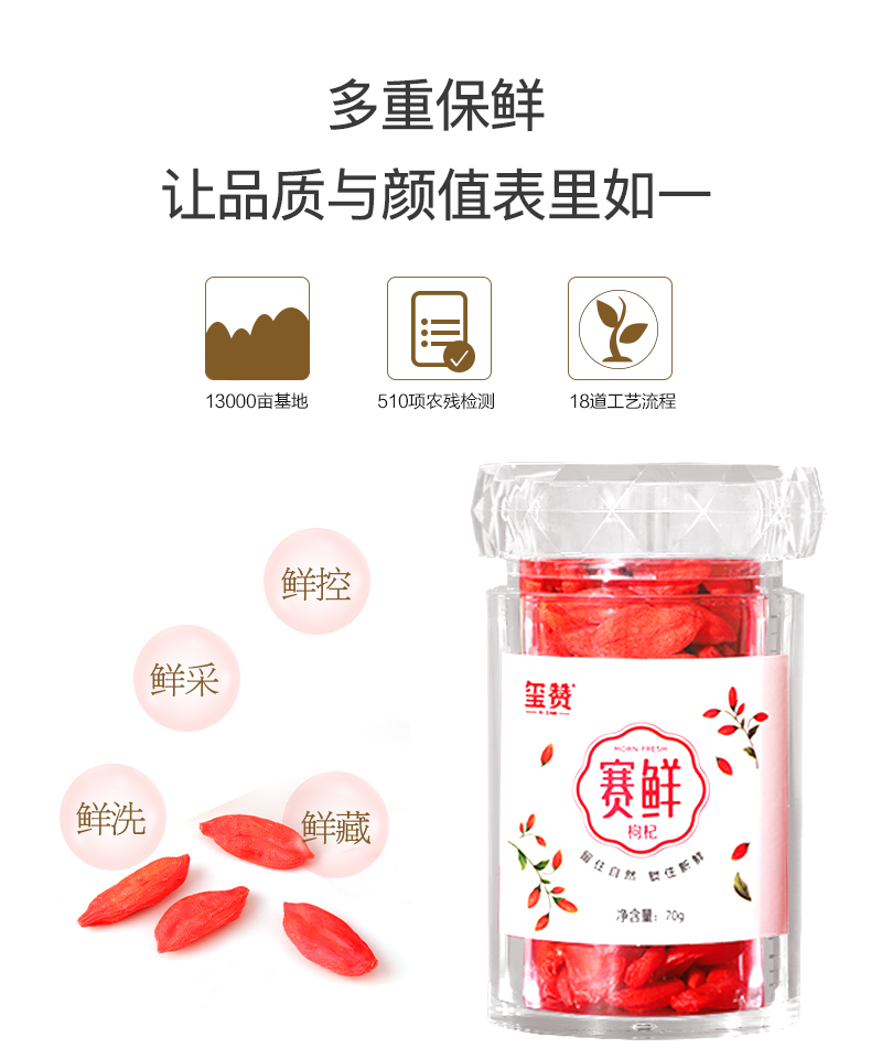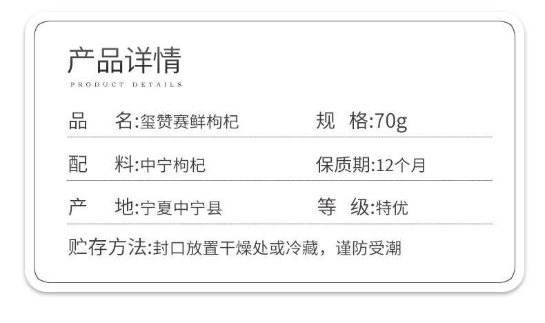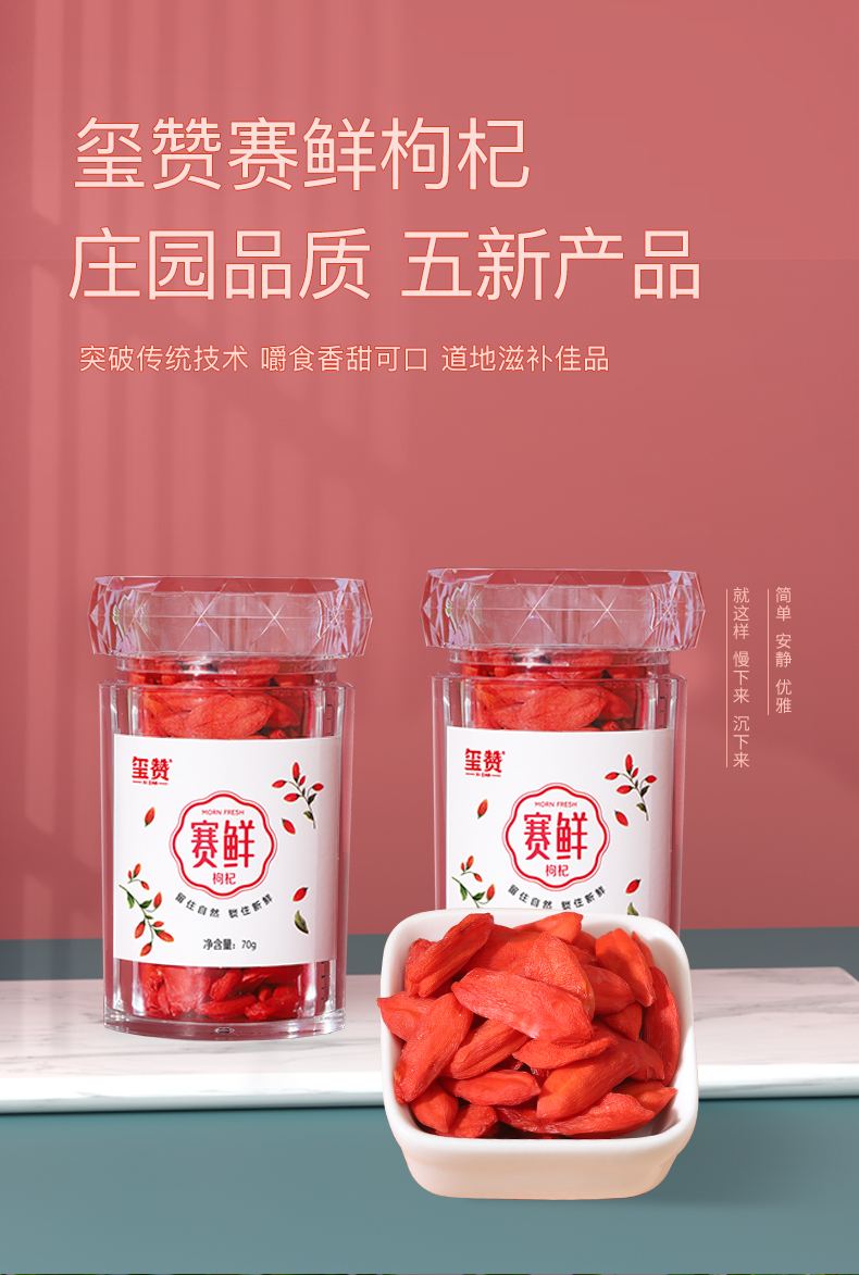 宁夏核心产区 玺赞赛鲜枸杞子▏特优D级枸杞子 冻干枸杞 70g/瓶泡茶煲汤