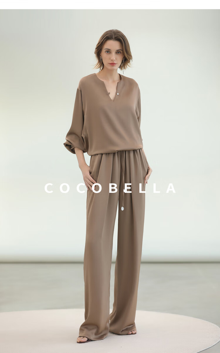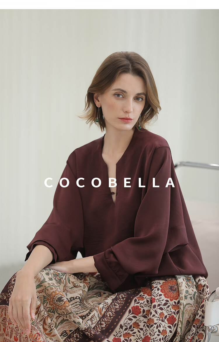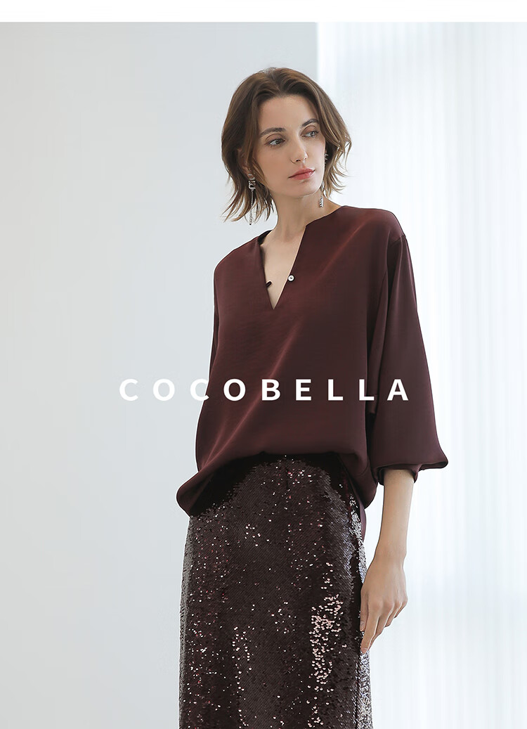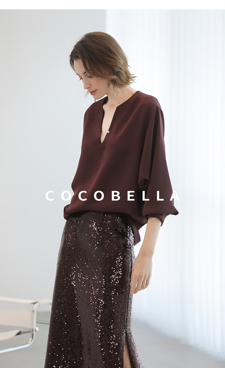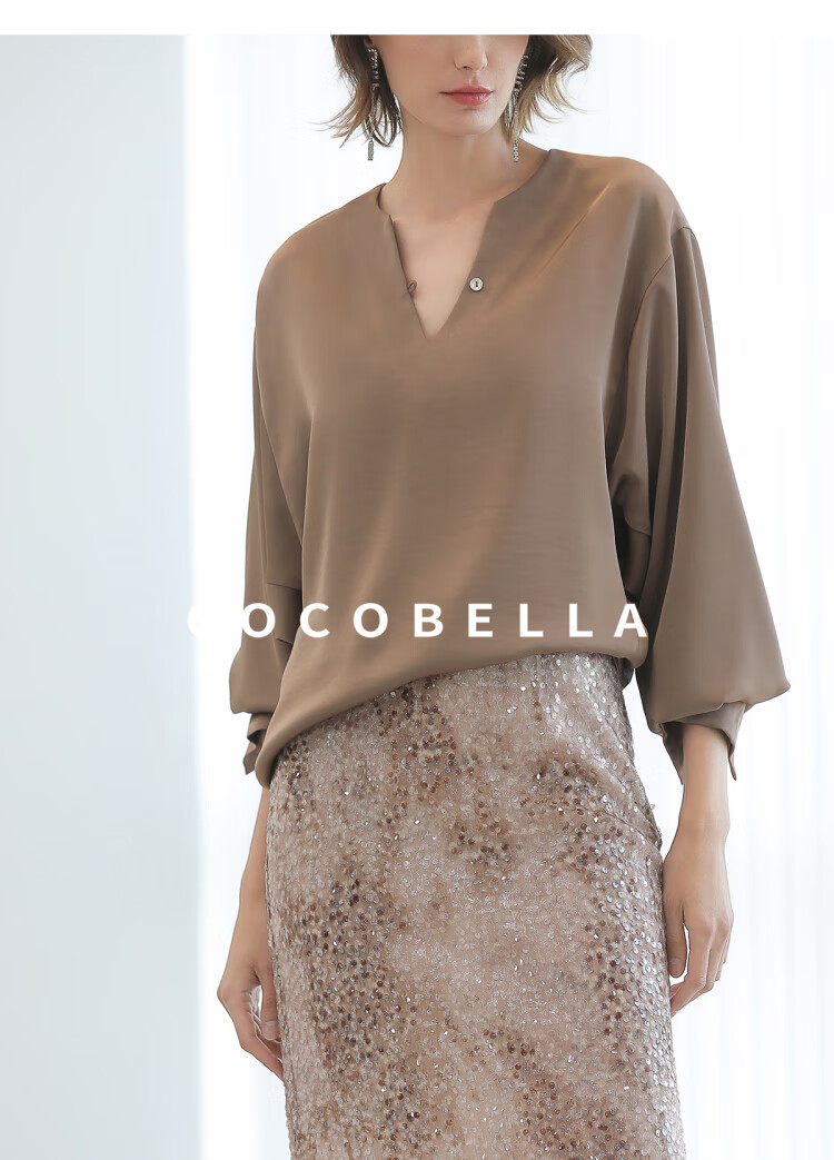 COCOBELLA松弛感仿醋酸质感做净衬衫女商务通勤上衣SR7066-3