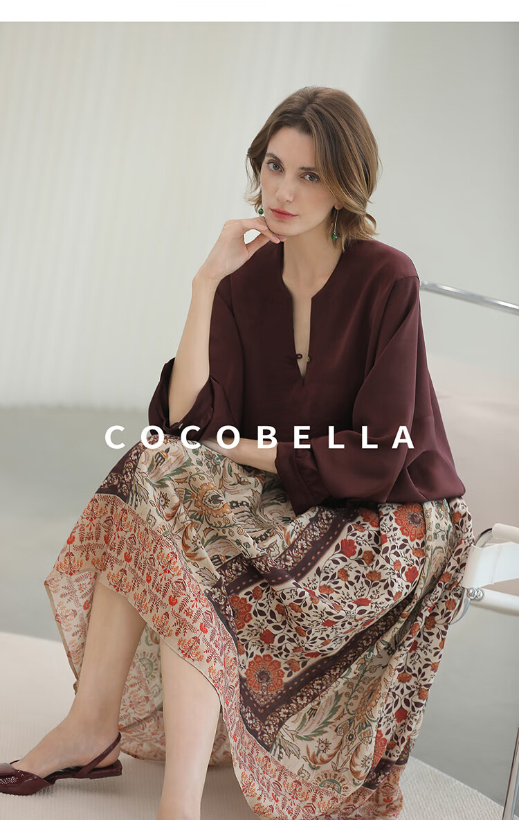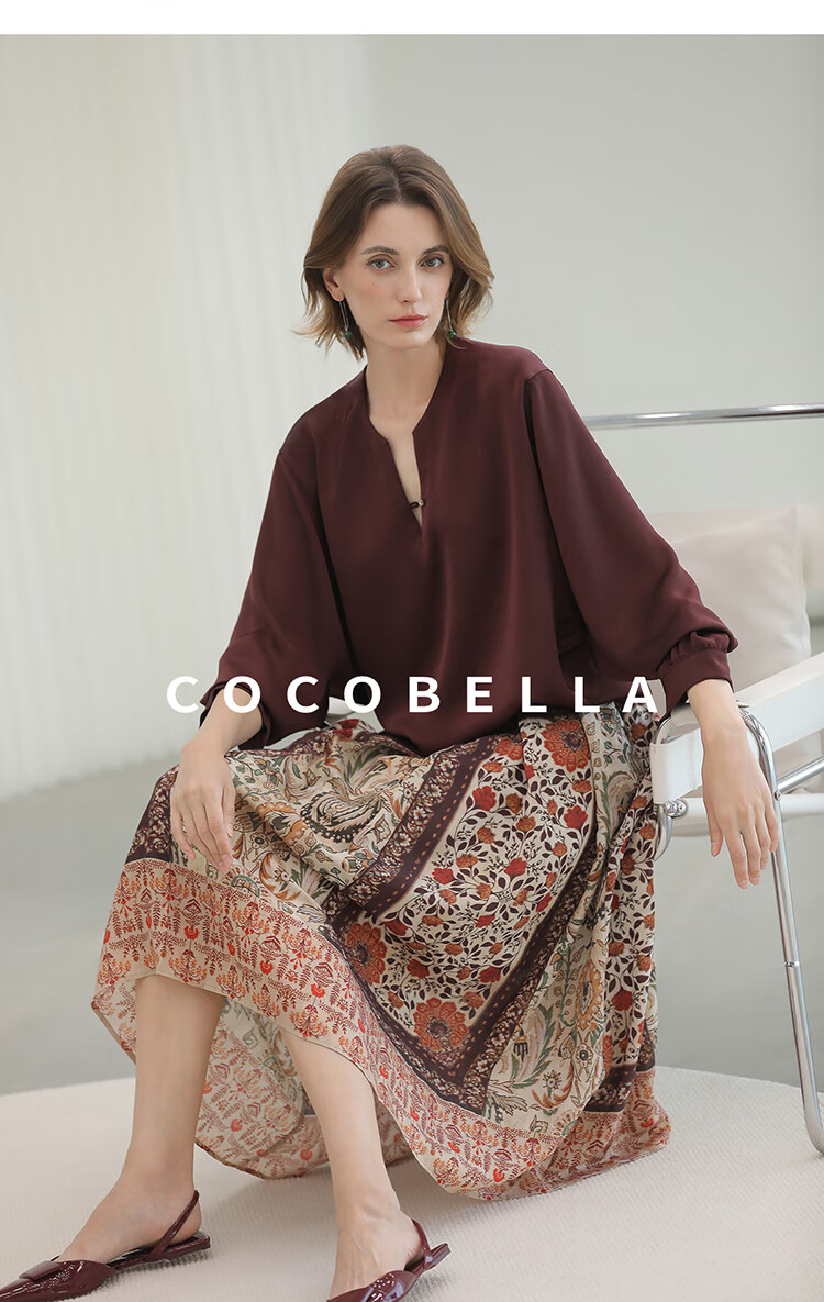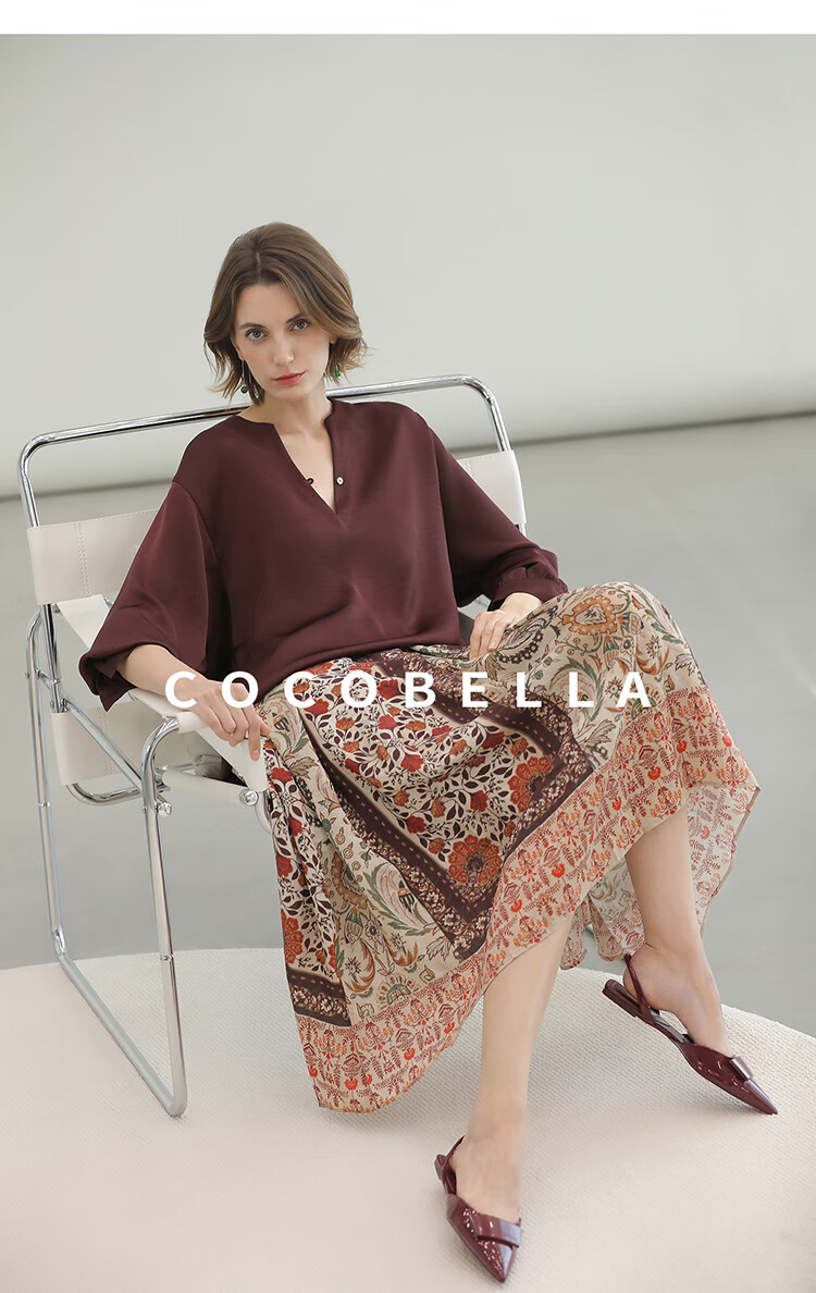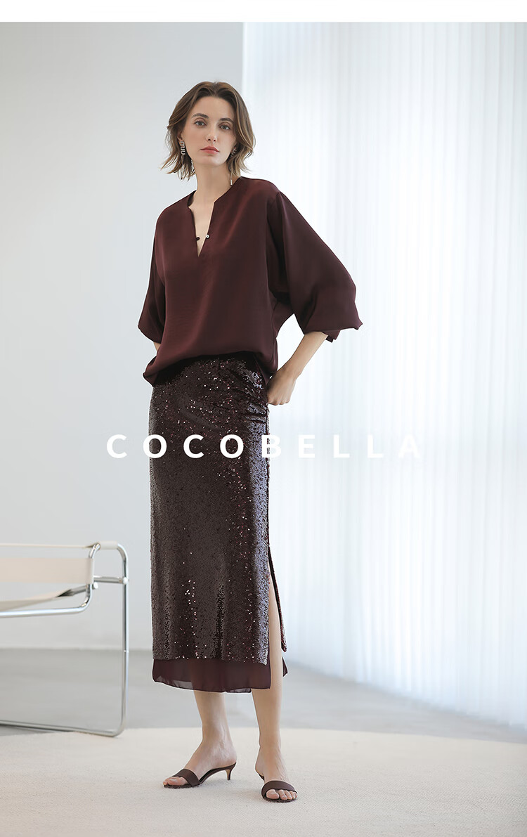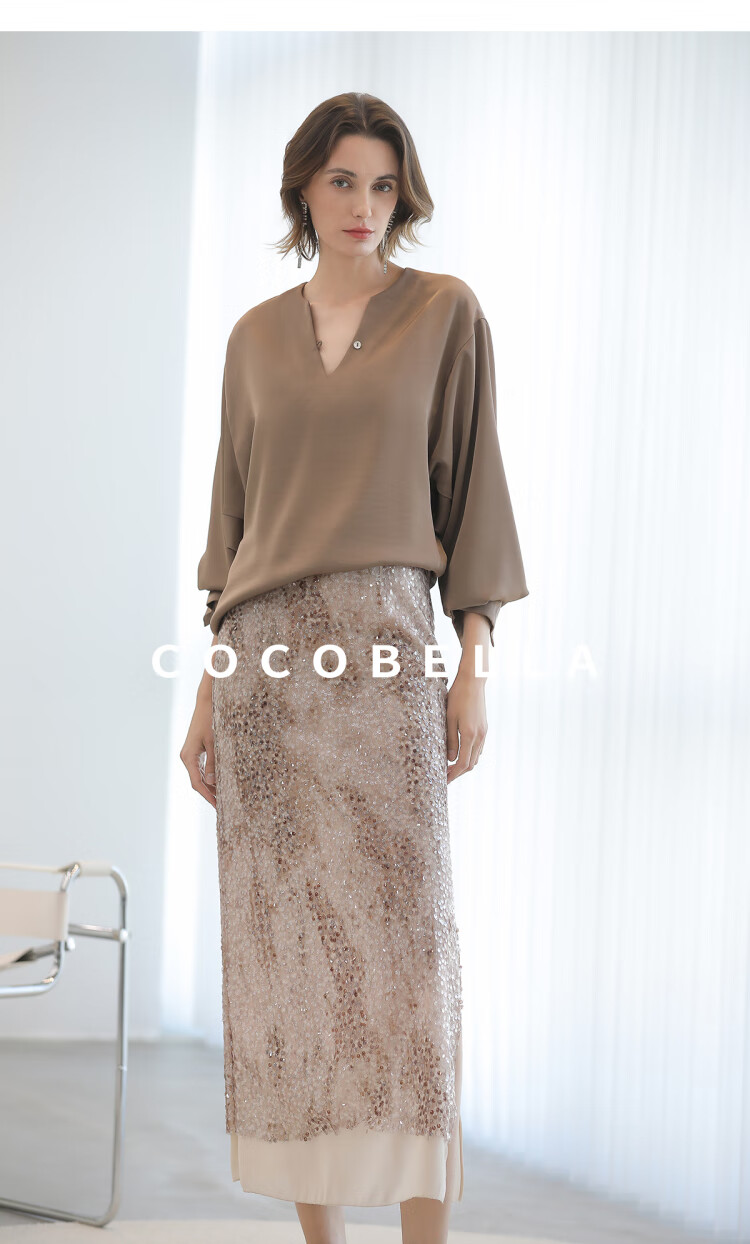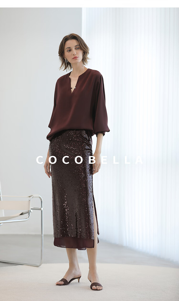COCOBELLA松弛感仿醋酸质感做净衬衫女商务通勤上衣SR7066-3