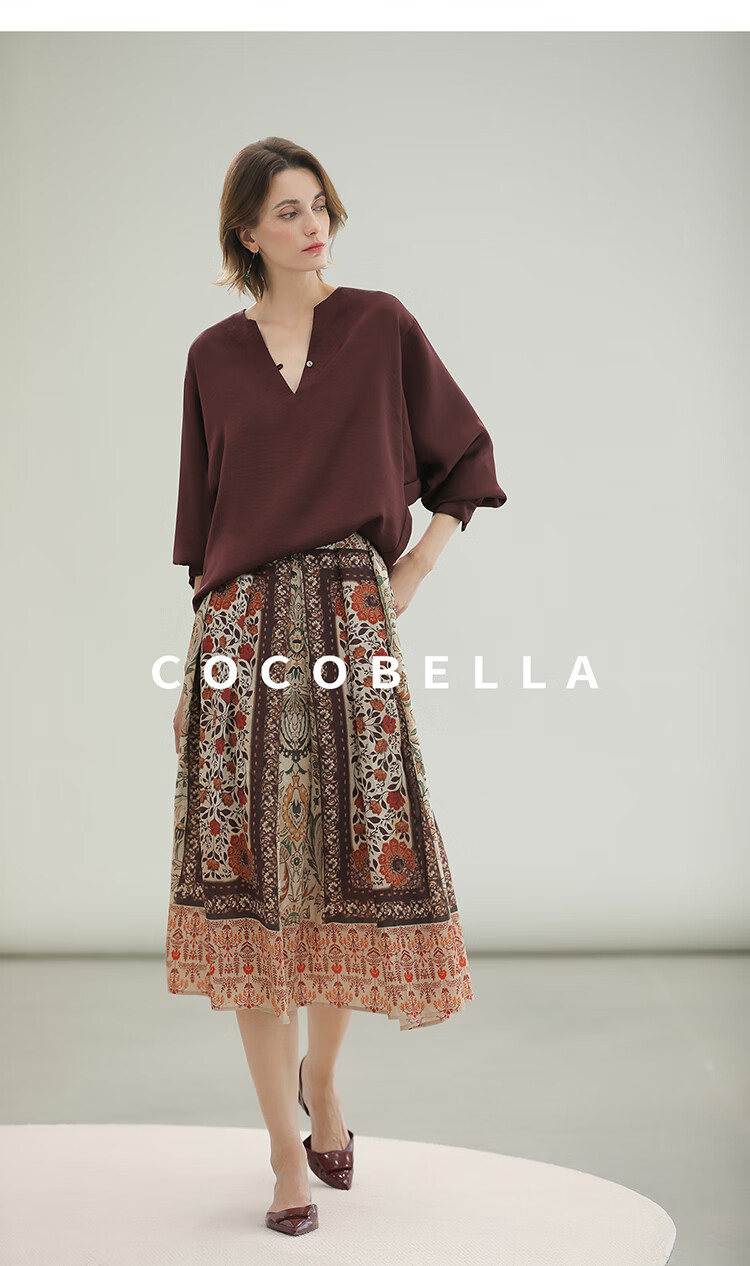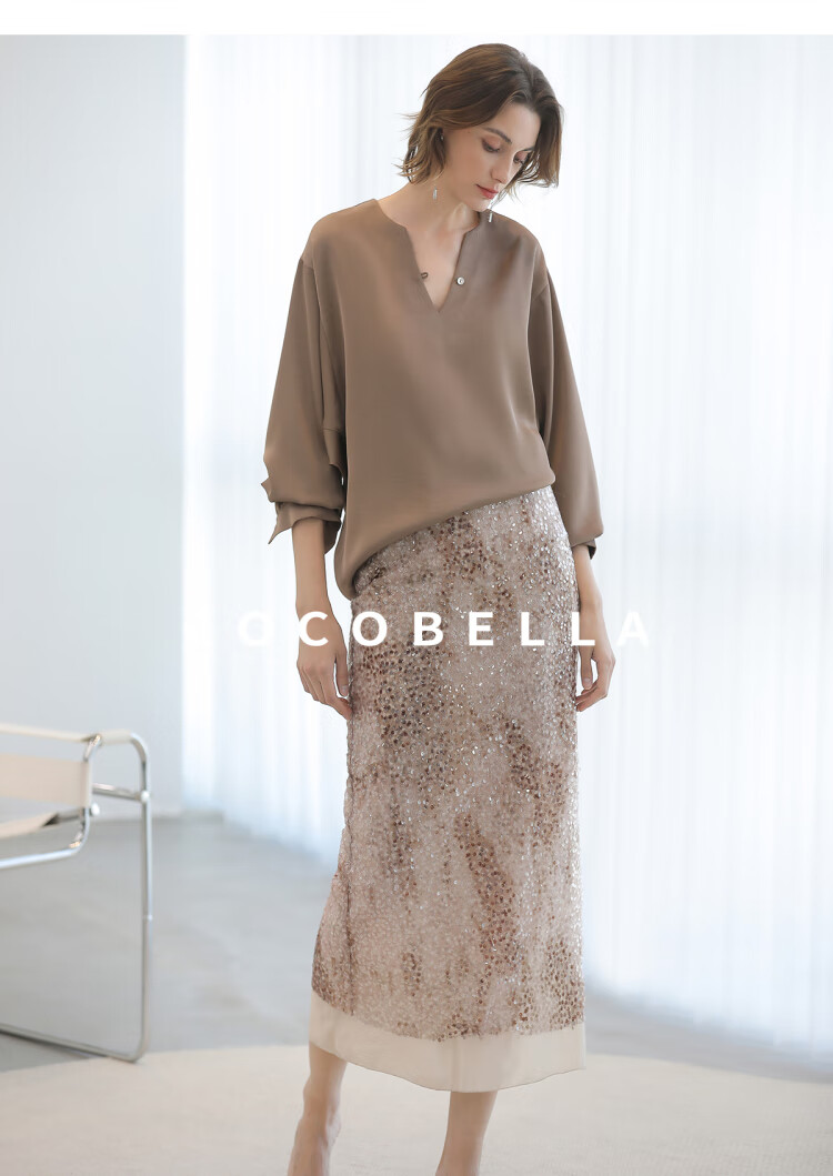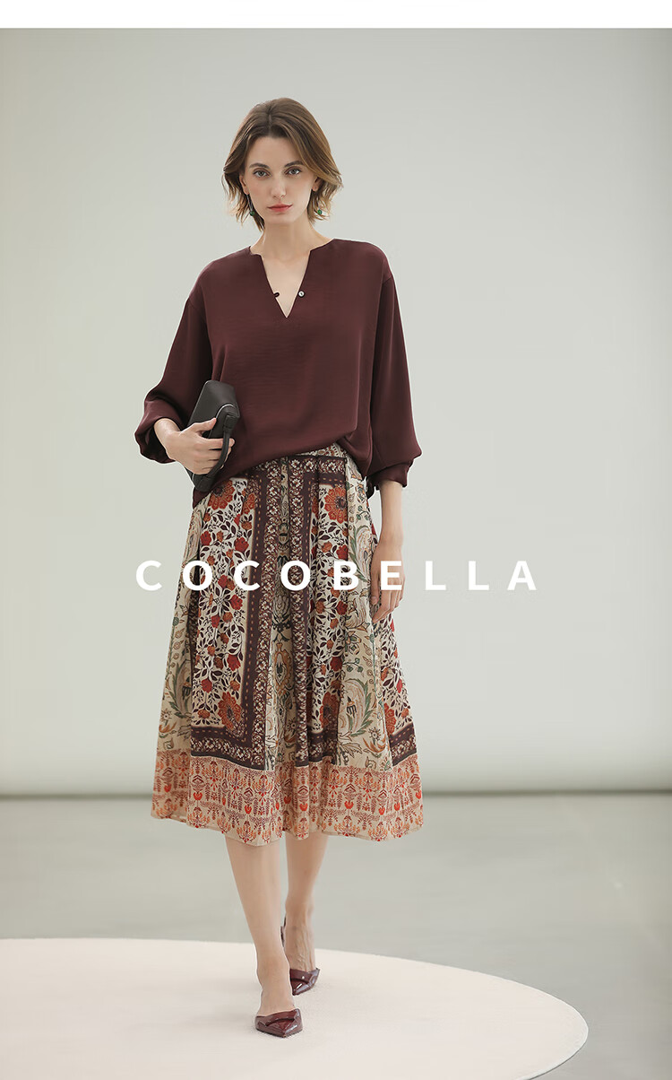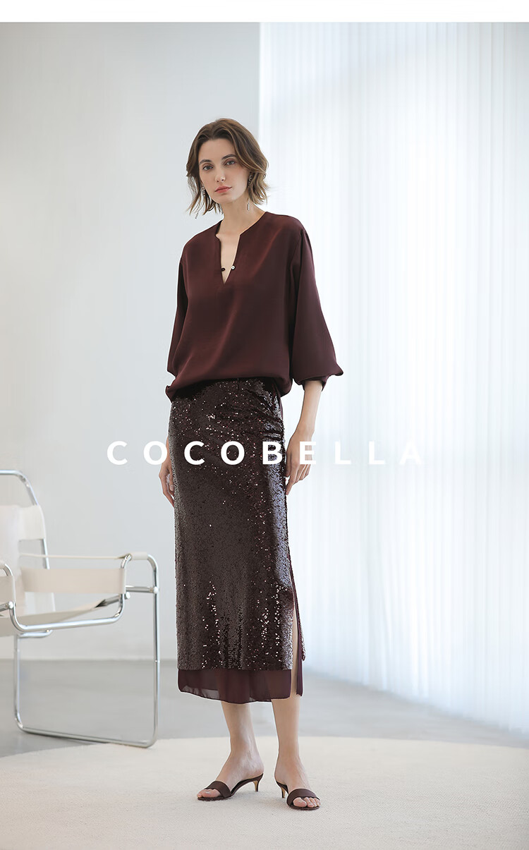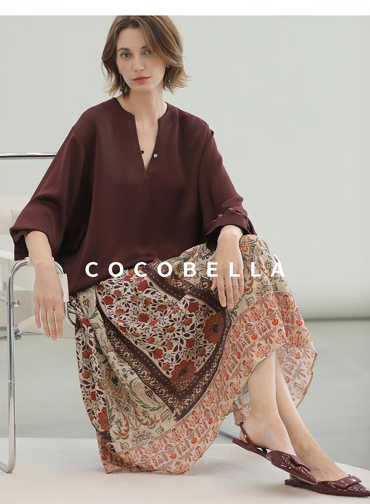 COCOBELLA松弛感仿醋酸质感做净衬衫女商务通勤上衣SR7066-3
