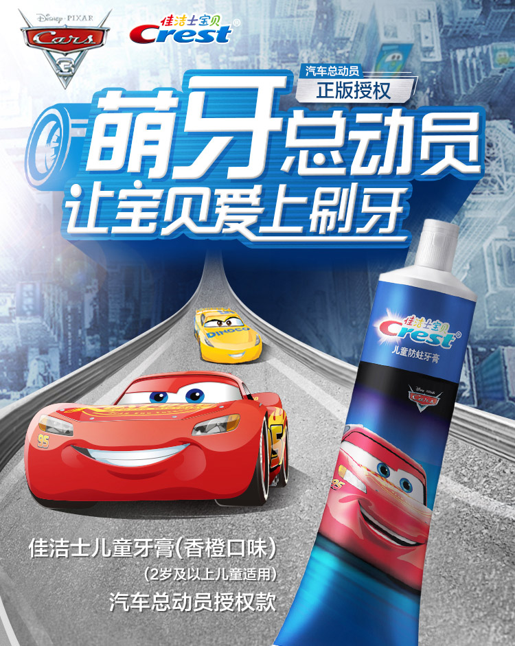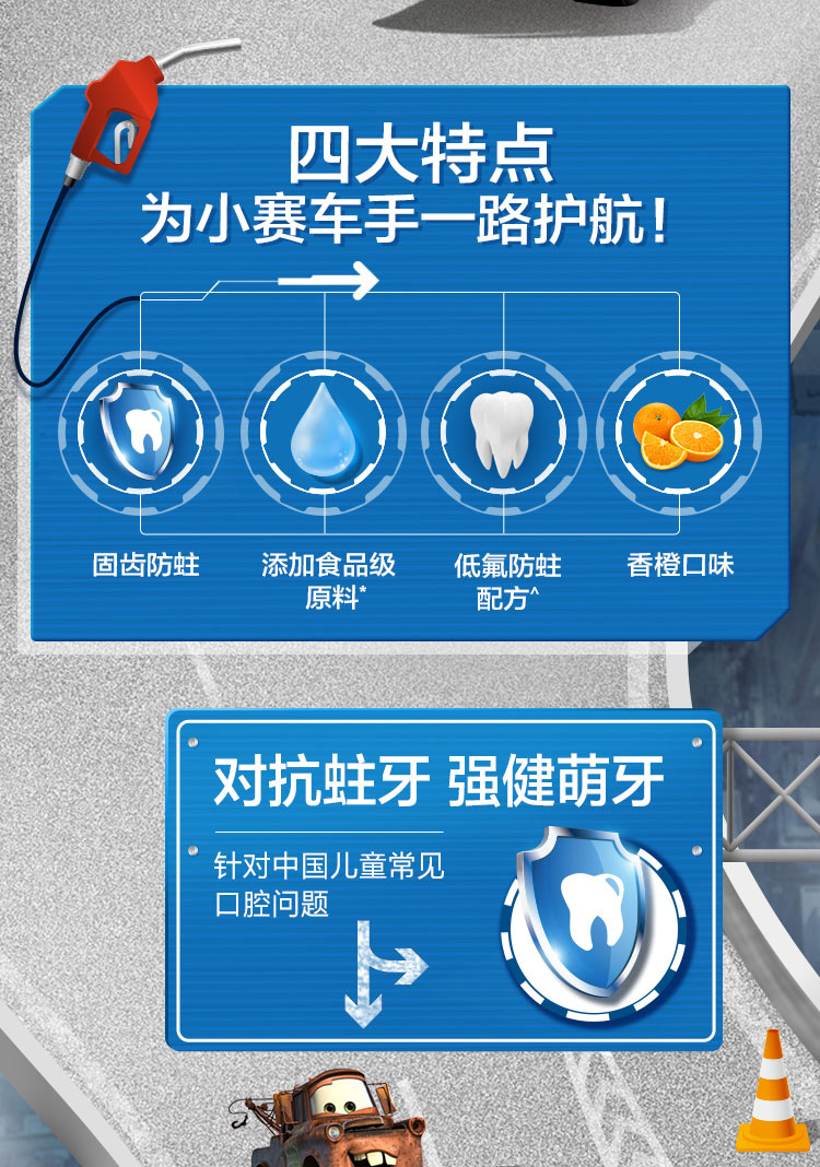佳洁士儿童防蛀牙膏赛车总动员(香橙味)40克三支装