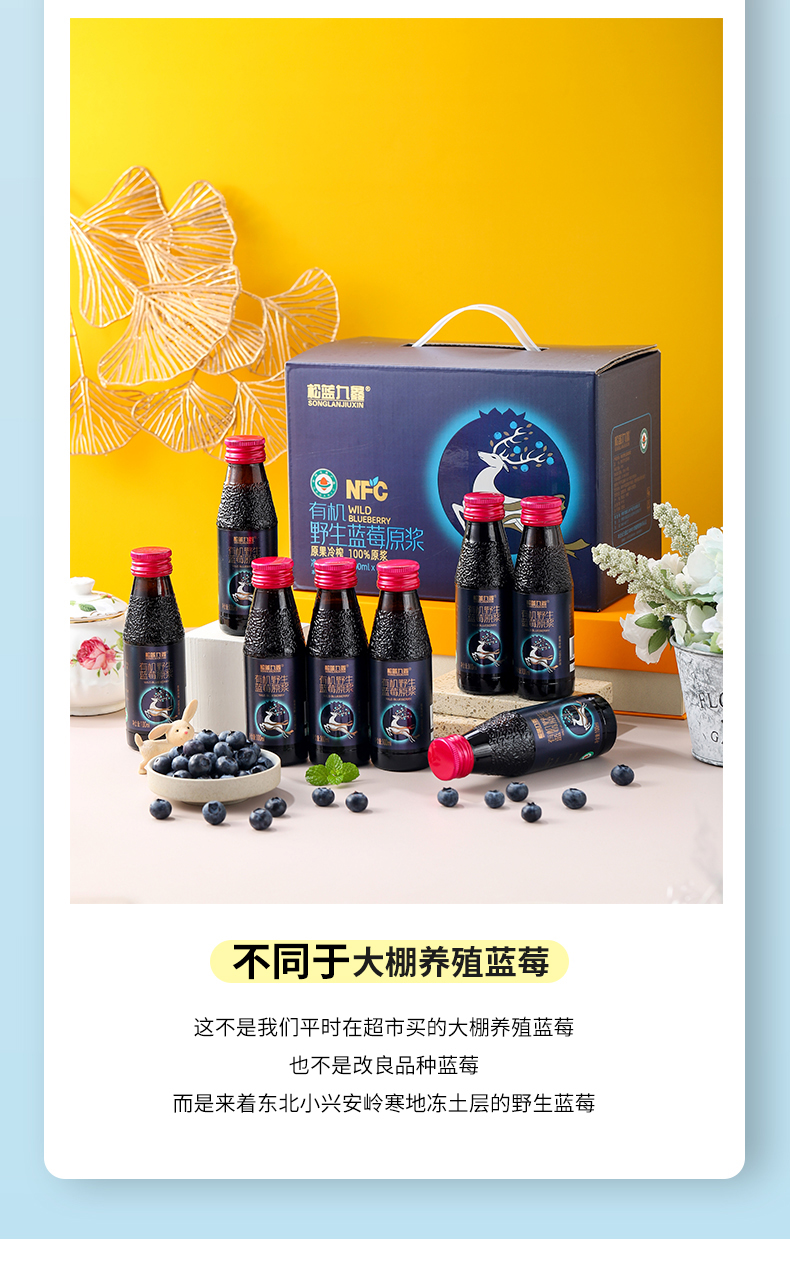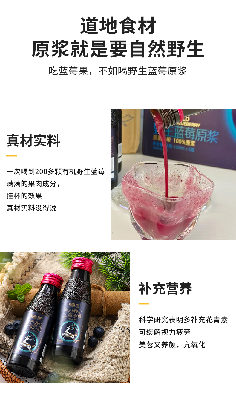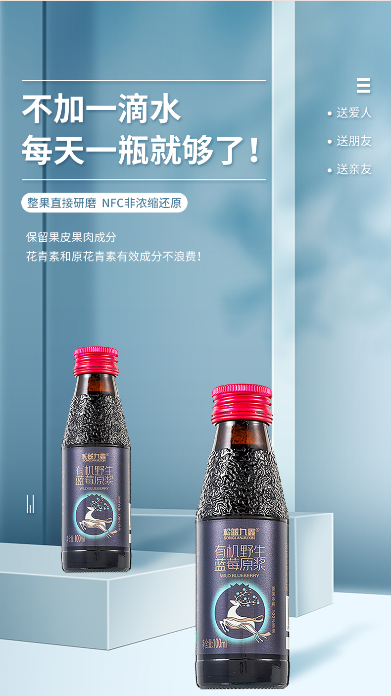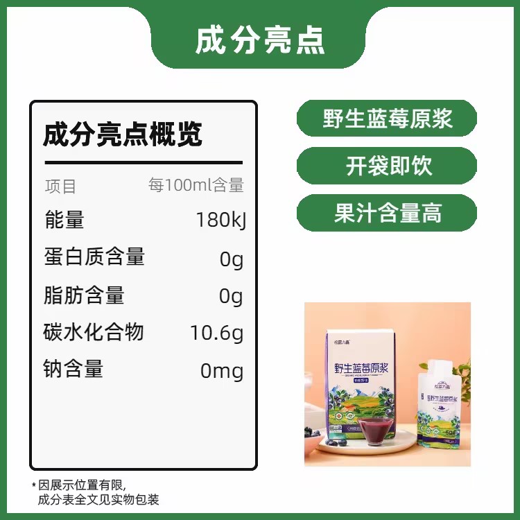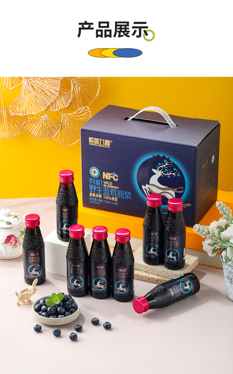 有机野生蓝莓原浆 开袋即饮30ml*10袋/盒装/100ml*8瓶装【京东快递送货上门】
