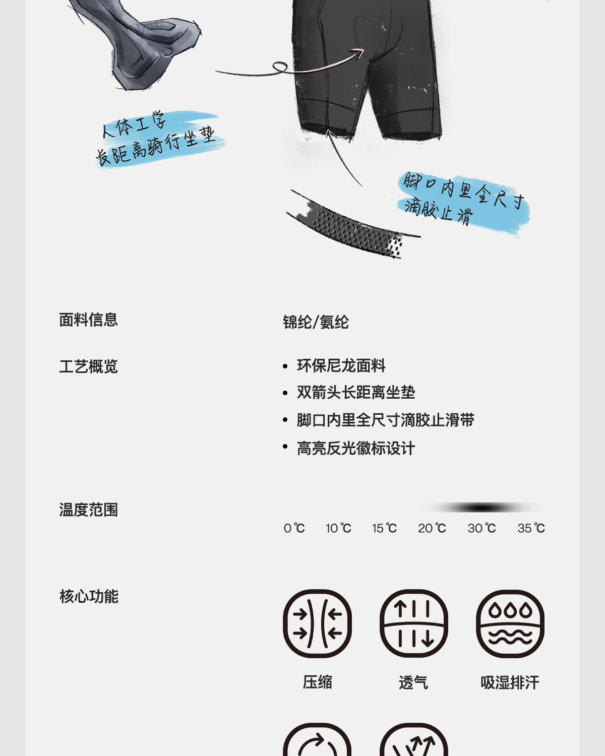 GRC桀骛无尽春夏季新款TECH骑行服双箭头无背带短裤自行车骑行裤女