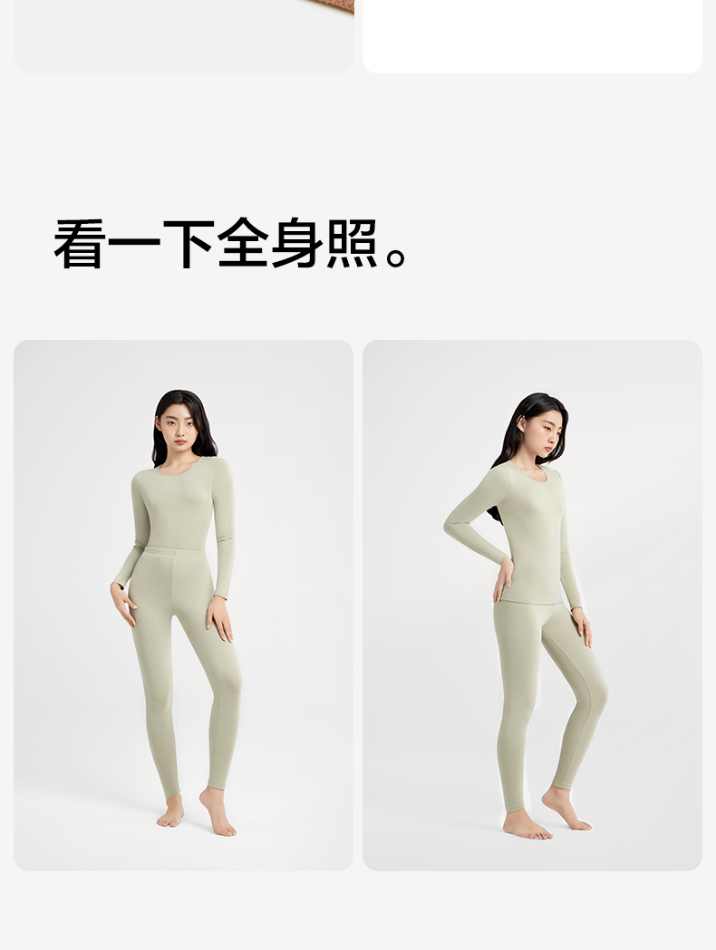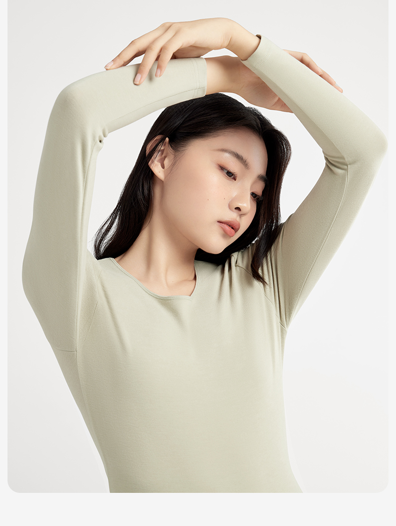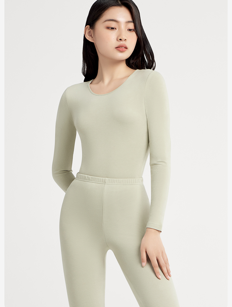 有棵树女士德绒内搭圆领秋衣秋裤加厚保暖内衣套装S-BW1006