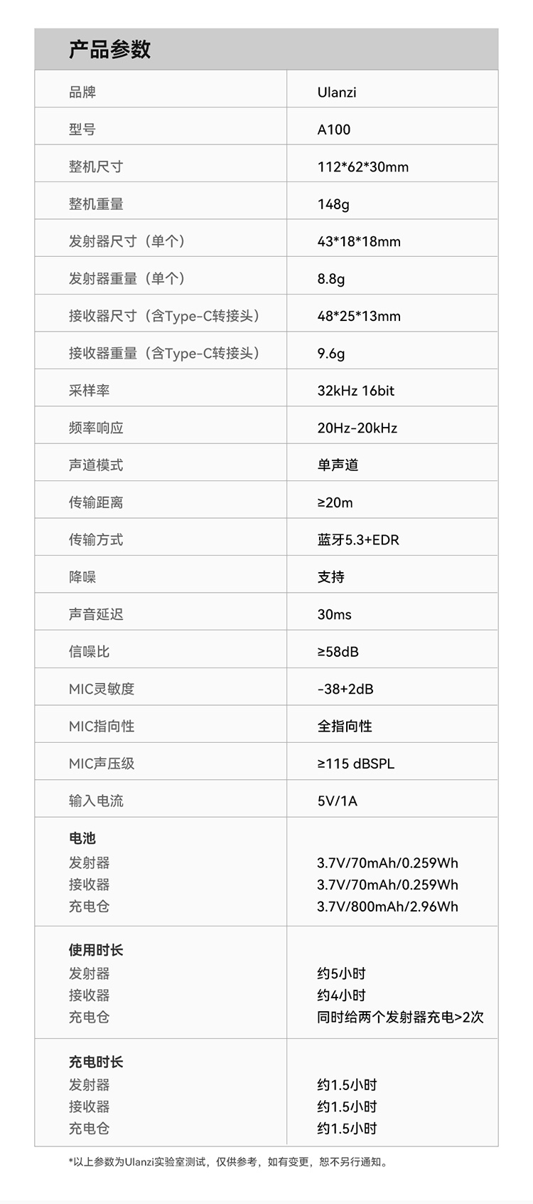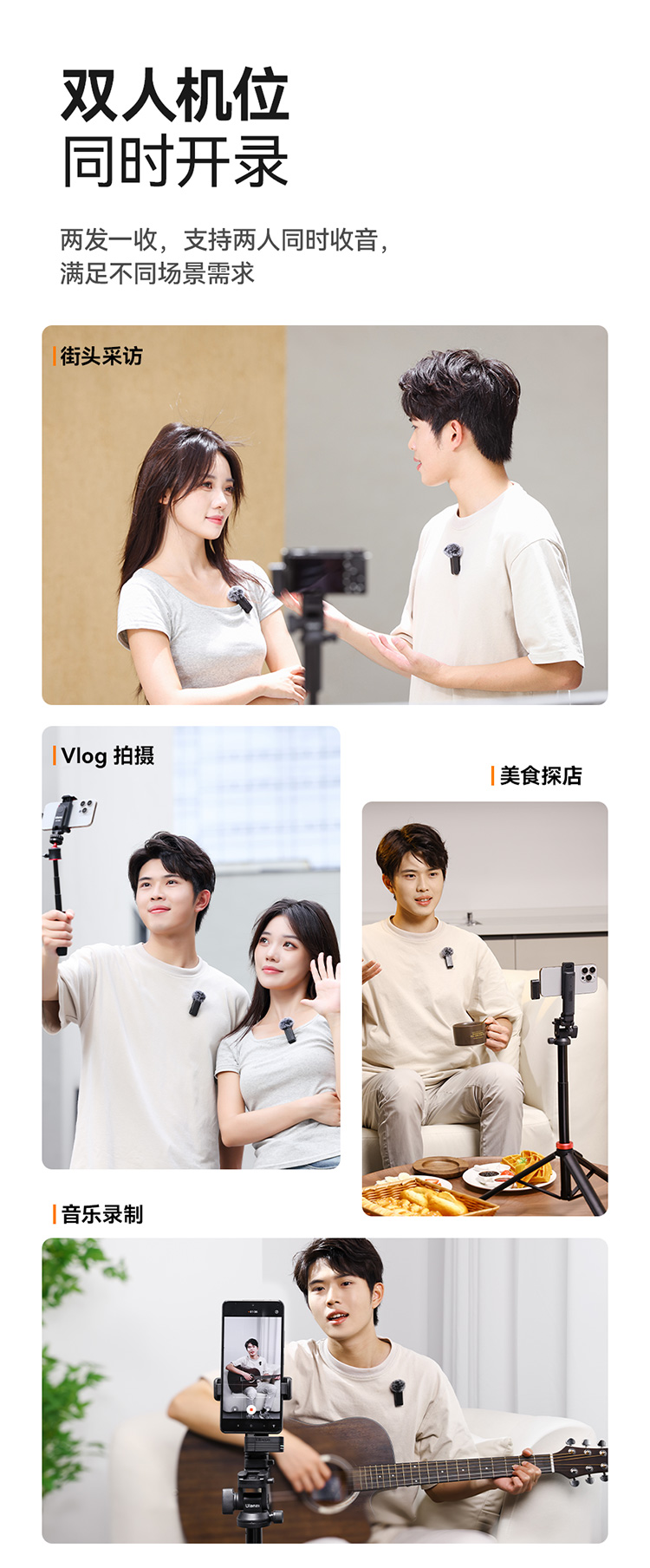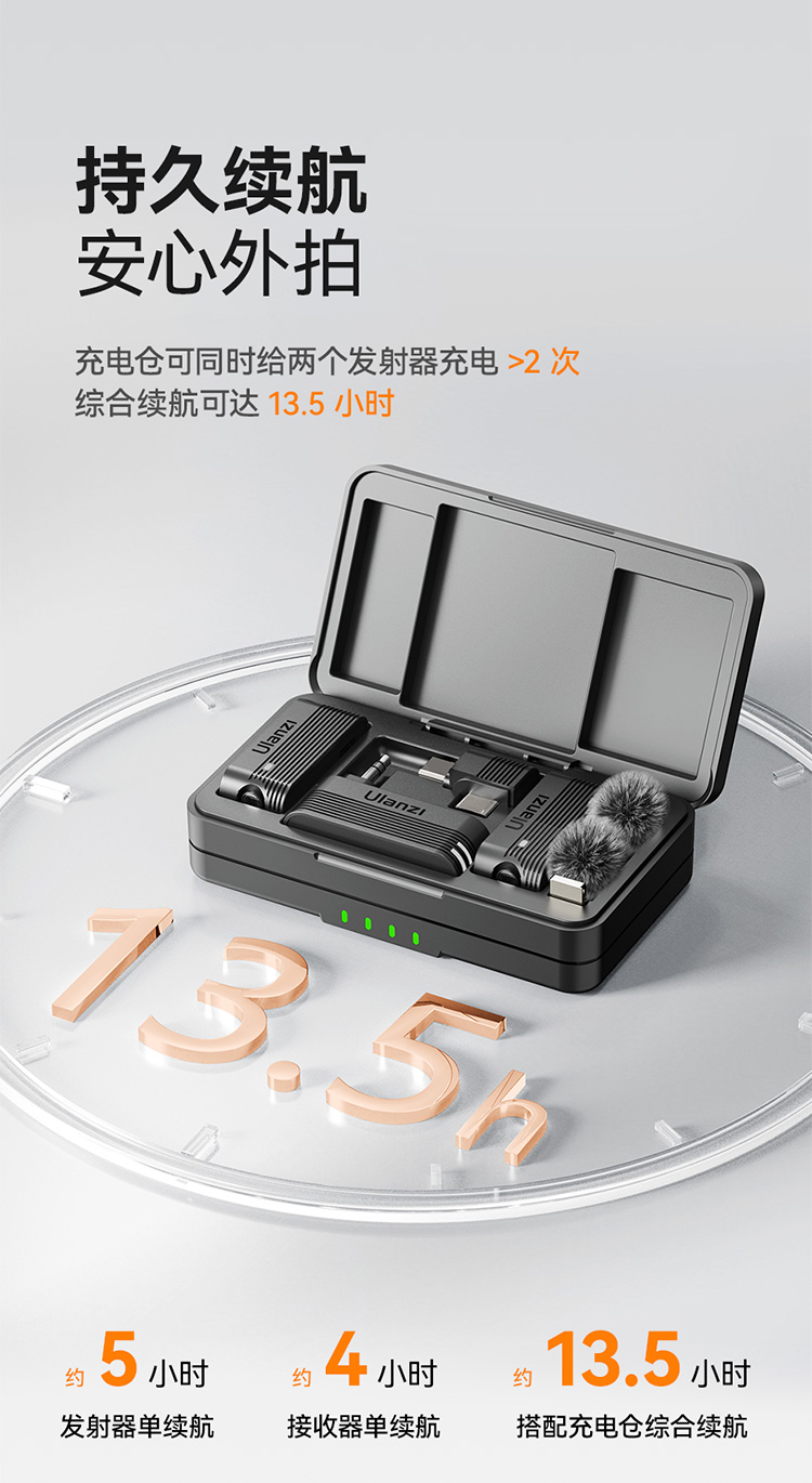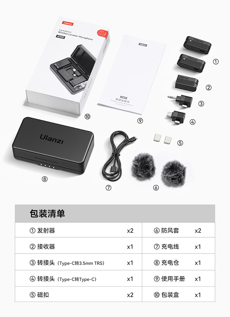 Ulanzi 优篮子A100无线领夹麦克风Type C款一拖二无线麦克蓝牙麦克风