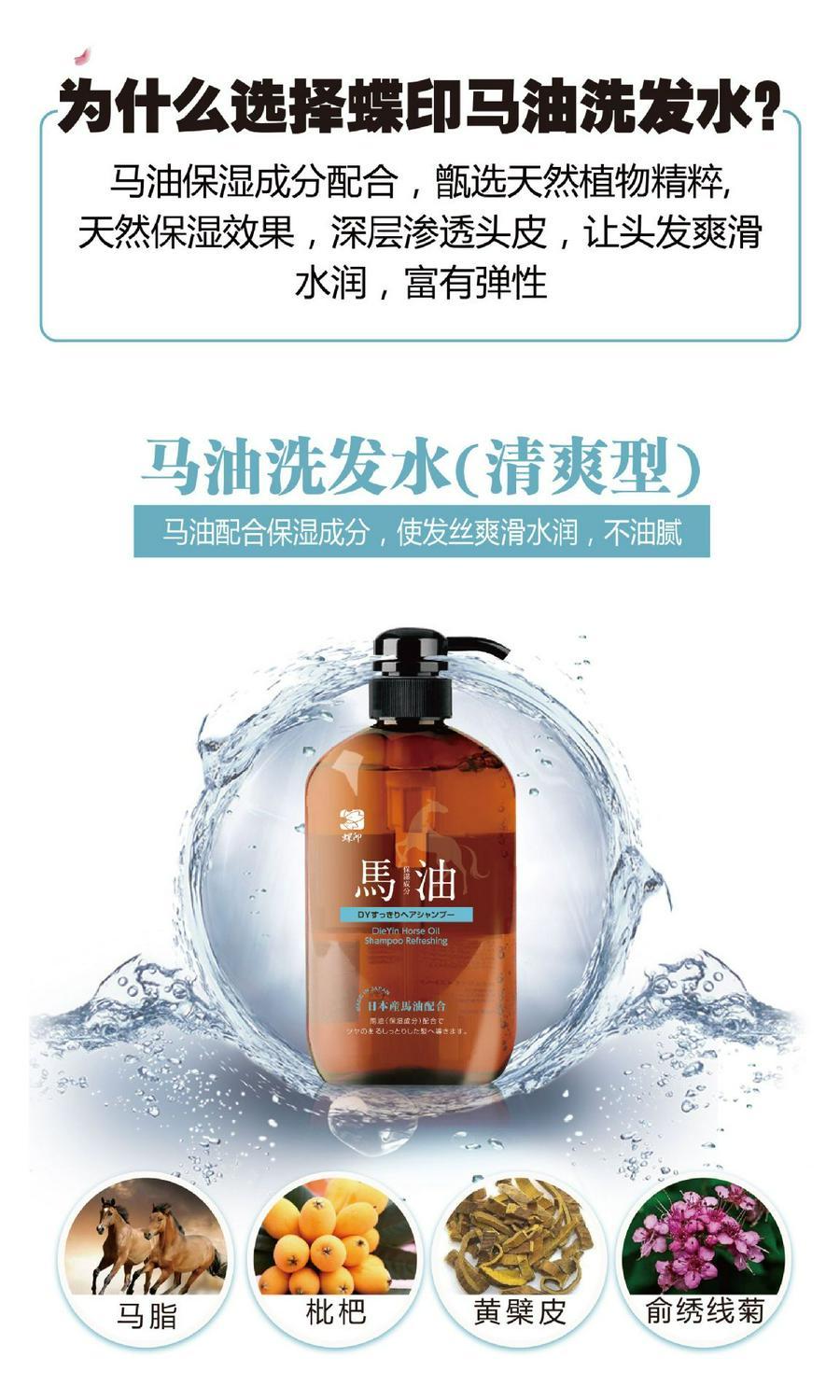 蝶印马油洗发水保湿洗发露香波600mL去屑无硅油