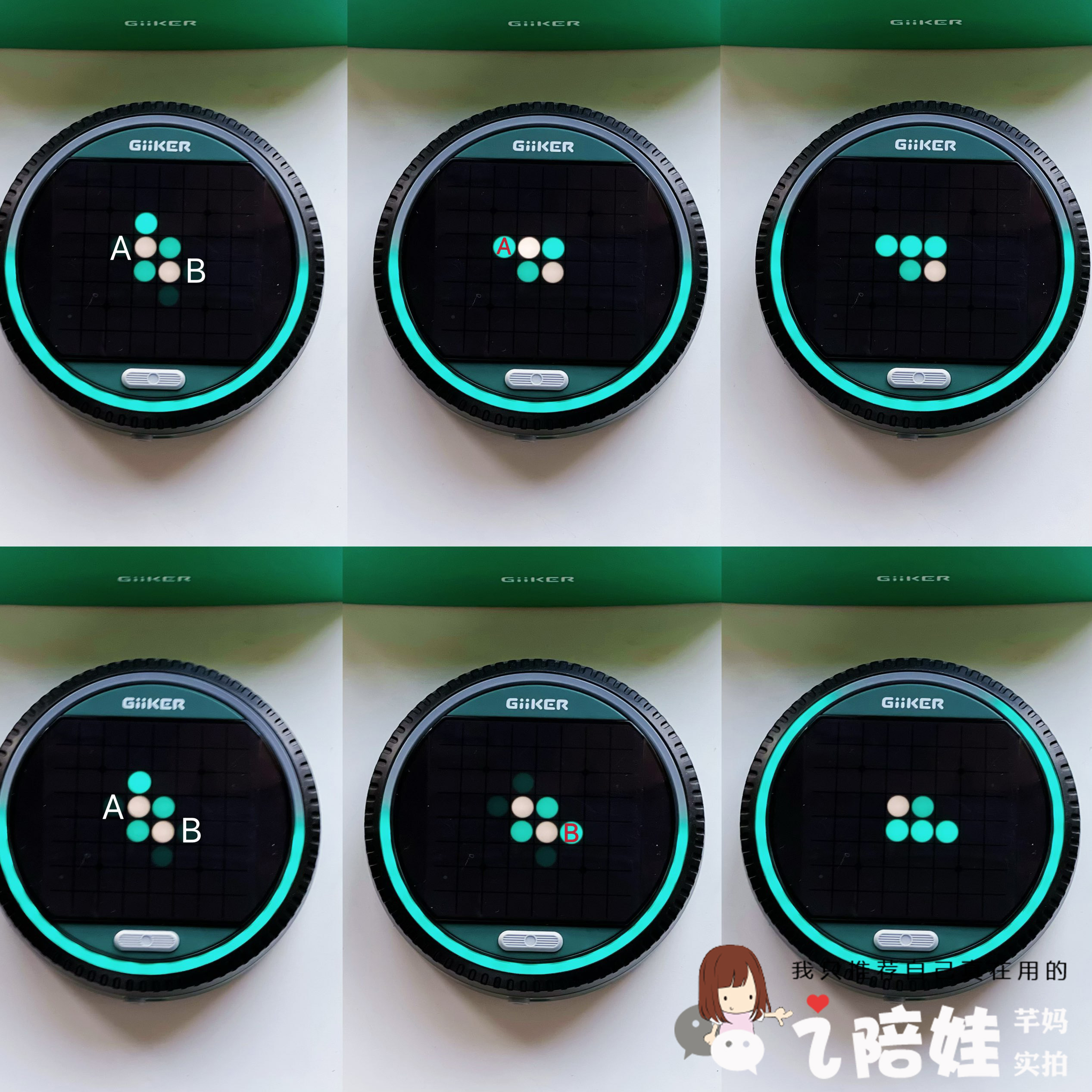 比如落在A点,能翻转上面一条线上的1个棋,但是落在B点,能翻转下面一条条线上的棋,她每次都要全盘思考一遍,选出对自己接下来蕞有利的。