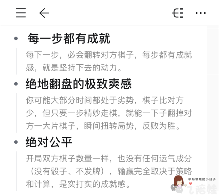我看她玩的时候,一开始是只要落子就行;后来逐渐开始思考,落在哪里能翻转更多。