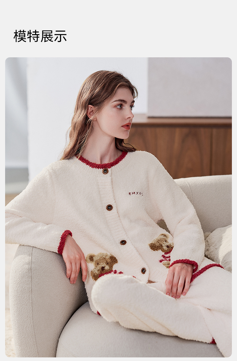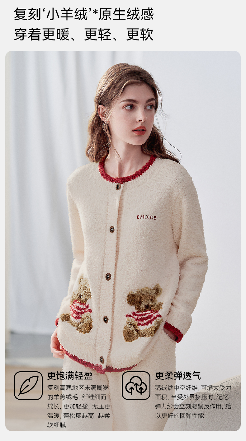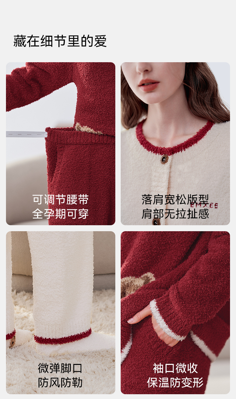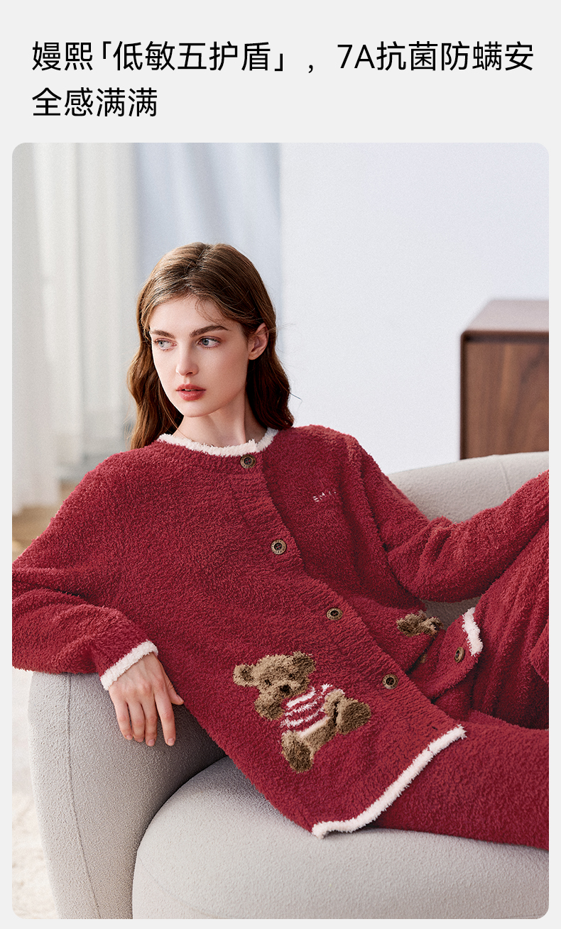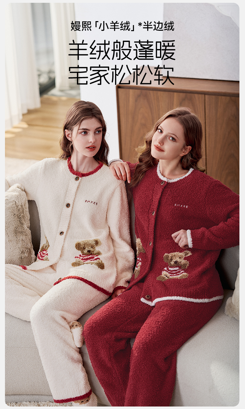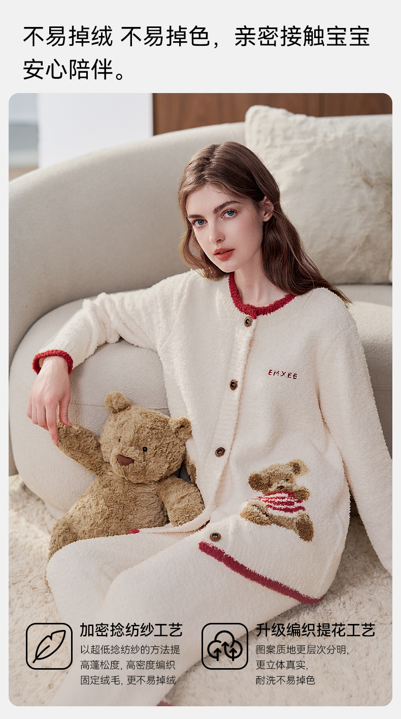【家居服专场】嫚熙秋冬季小羊绒半边绒孕妇睡衣哺乳月子服小熊家居服