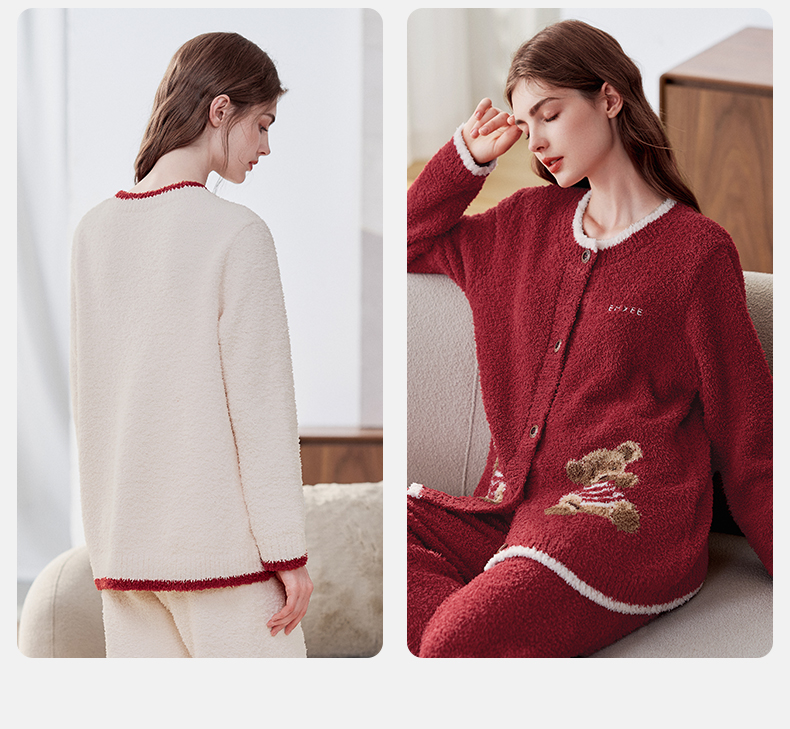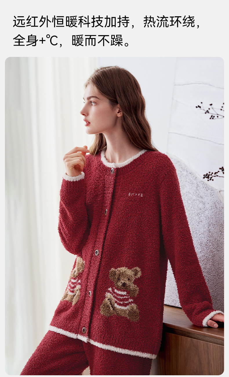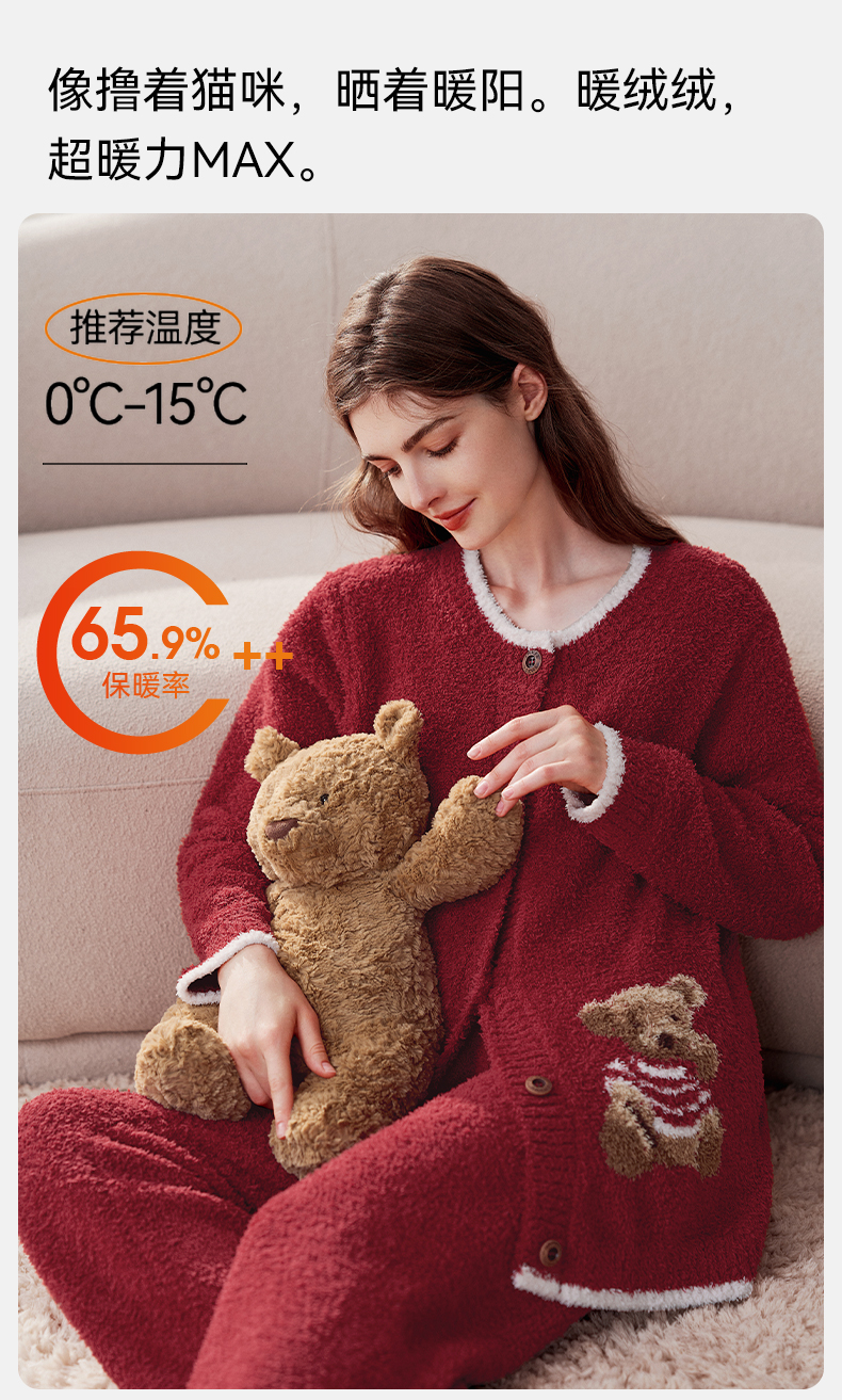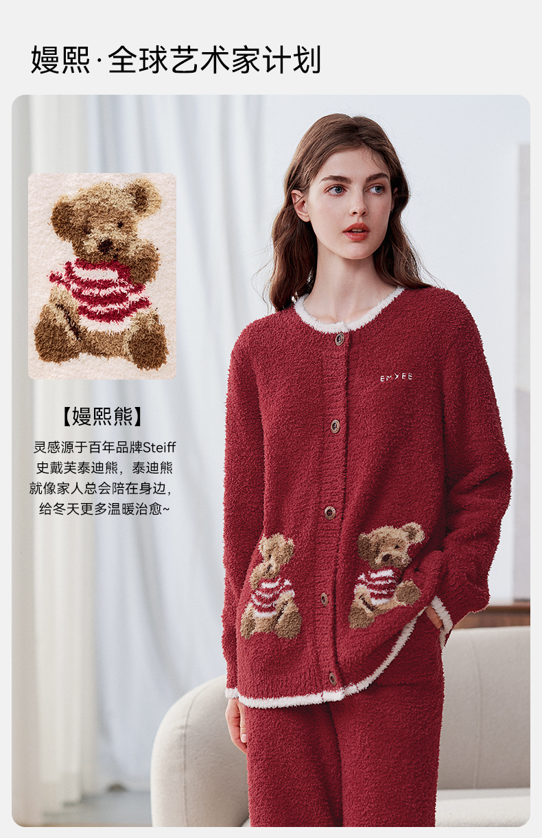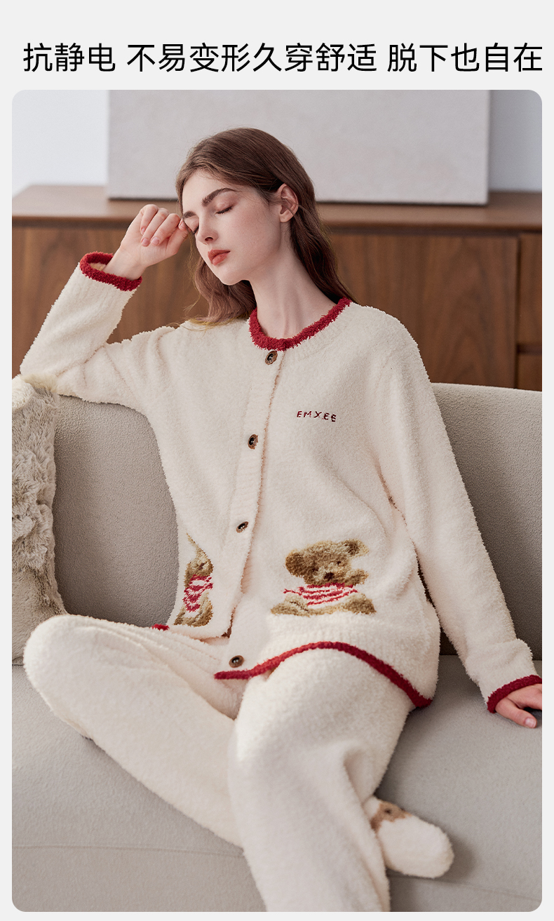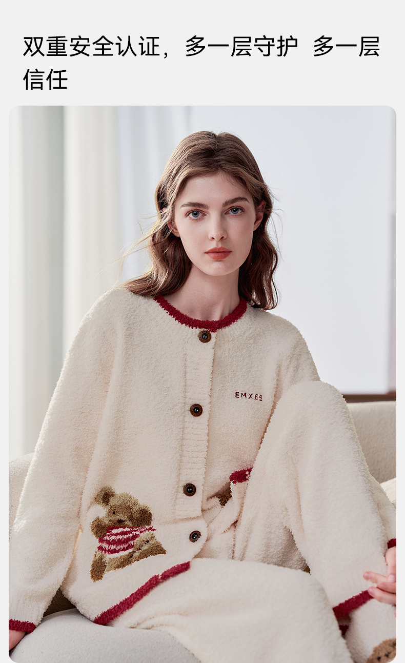 【家居服专场】嫚熙秋冬季小羊绒半边绒孕妇睡衣哺乳月子服小熊家居服