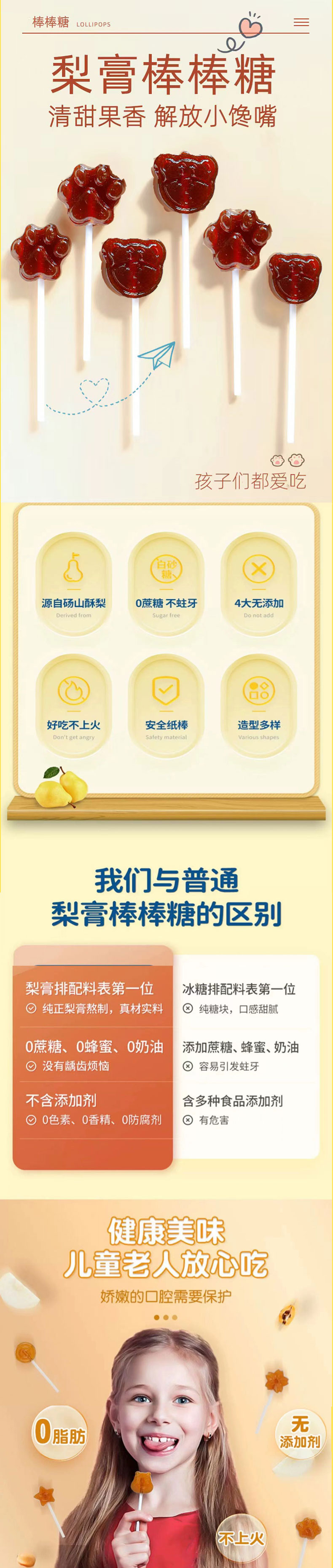 柏舍禅房 无蔗糖古树雪梨棒棒糖48g