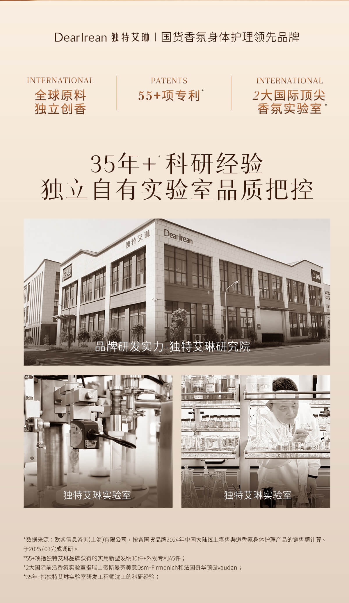 - DearIrean 独特艾琳,高定香氛生活品牌,拥有体•研究所,品牌致力于将高定香氛带入生活,同时倡导“以香之名,带给生活美好方式”的品牌理念,传递精致女性的爱、独立、自信。