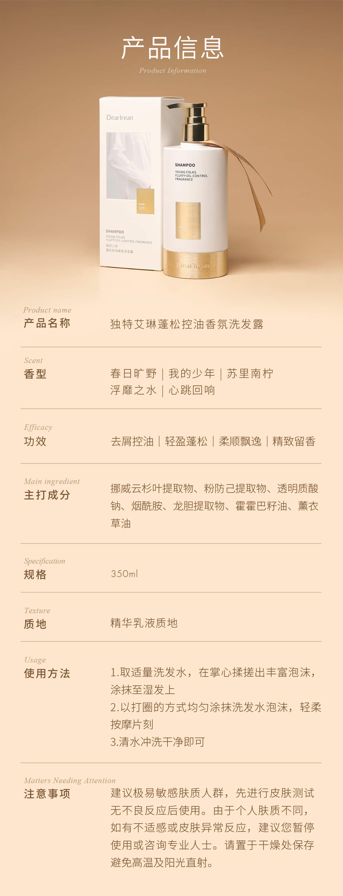 【现货速发】DearIrean 独特艾琳香氛洗发露去屑控油芳香护发留香洗发水350ml+护发素350ml 套组