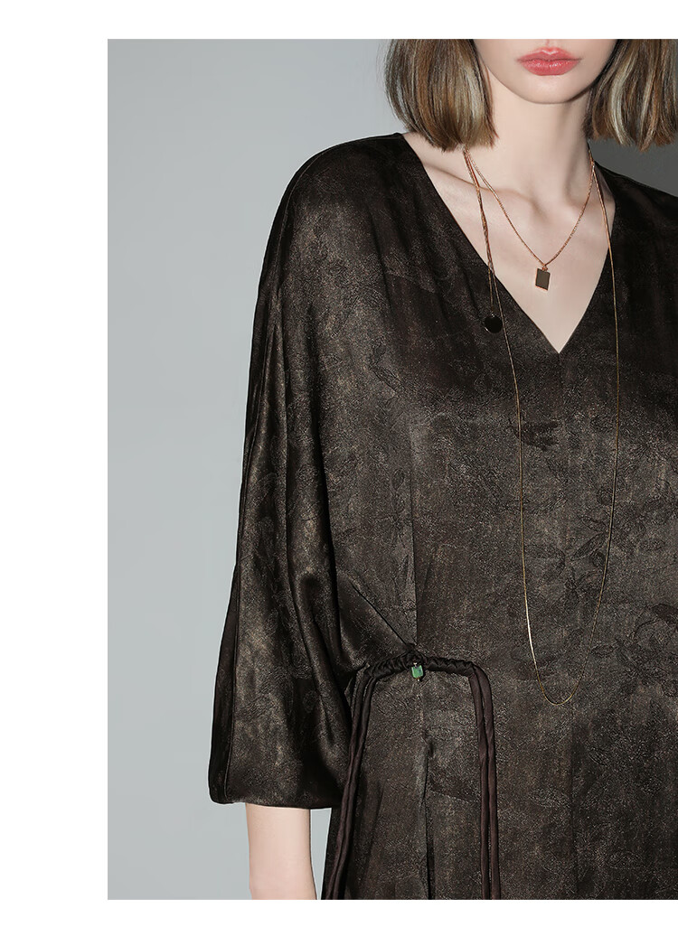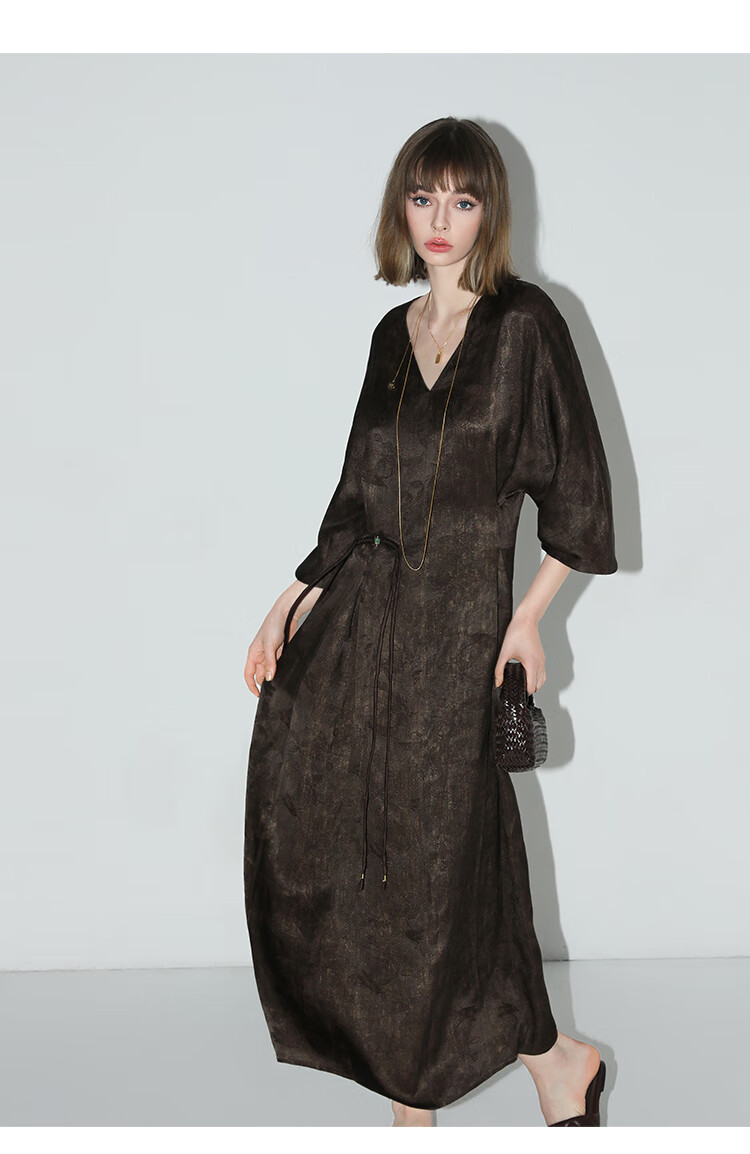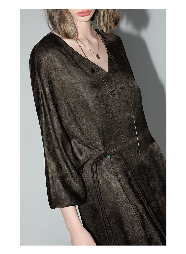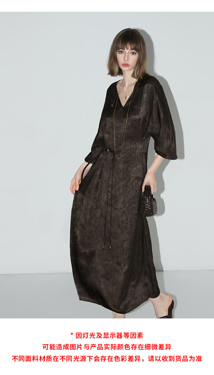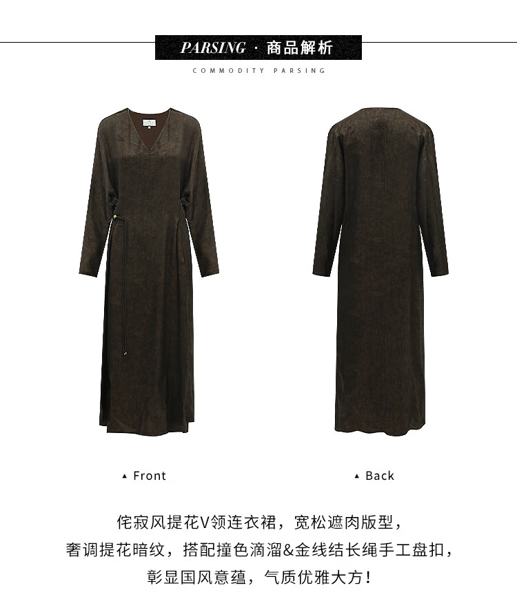 COCOBELLA新中式提花炒色人丝连衣裙凉感盘扣国风长裙FR3045