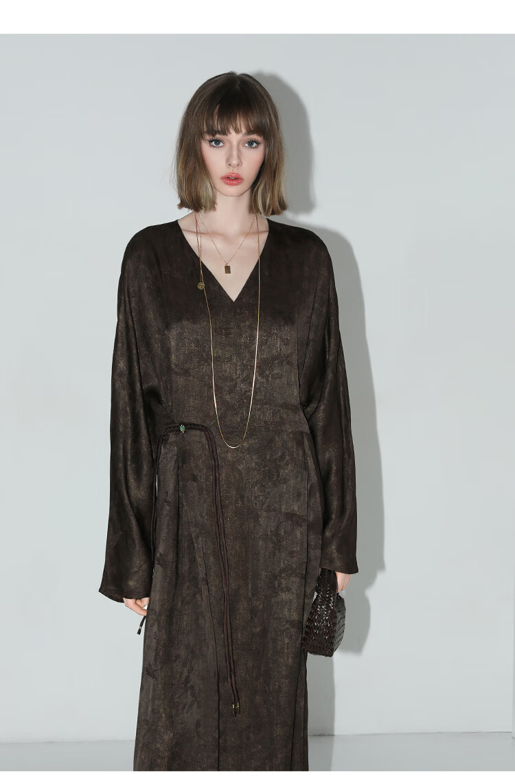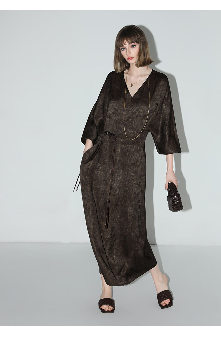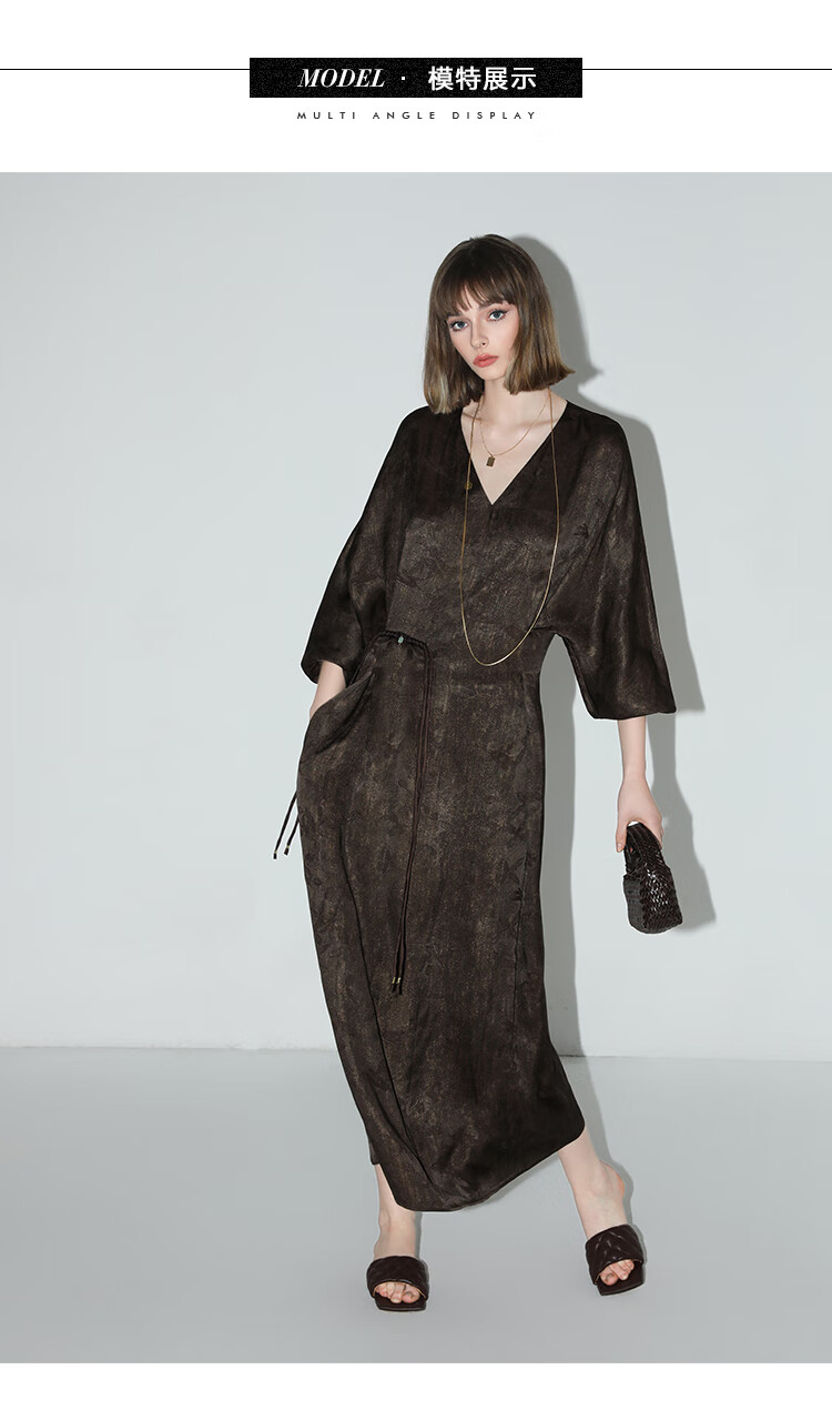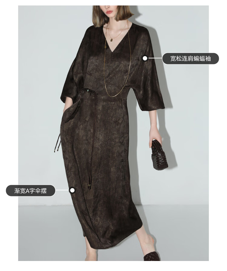 COCOBELLA新中式提花炒色人丝连衣裙凉感盘扣国风长裙FR3045