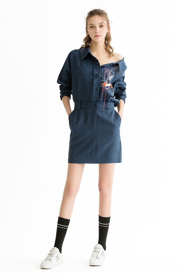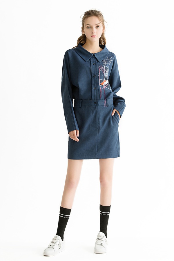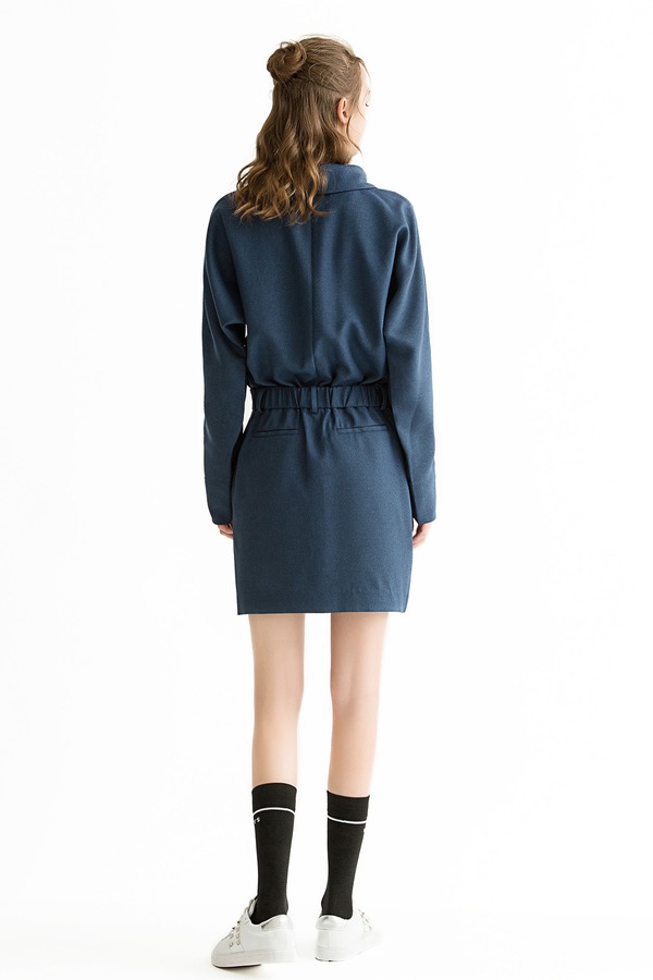 LILY 藏青色收腰衬衫裙 1221