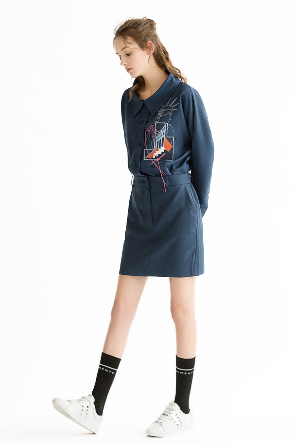 OCHIRLY欧时力 蓝色古典印花半身裙 3293